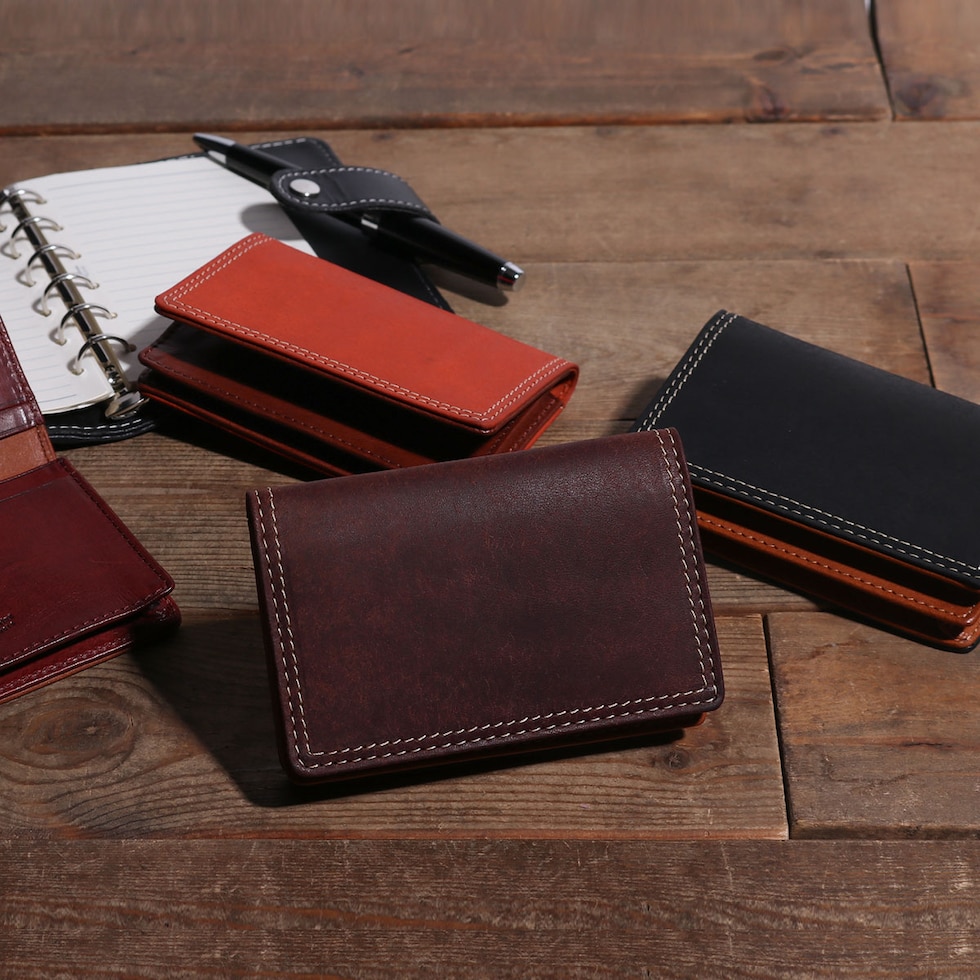 イタリアの名門CARLO BADARASSI社が鞣しているプエブロレザーを使用したシリーズ『PUEBRO/プエブロ』。こちらは独特の革の表情が味わえるカードケース。外側と内側の異なるカラーリングは普段使いやビジネスシーンにさりげない遊び心を演出してくれるアイテムです。