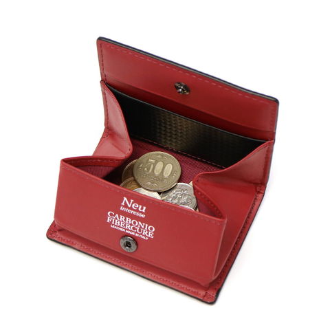 ノイインテレッセの代表的な素材を再構築し、新たな世界観を表現する『NACHT/ナハト』シリーズのコインケース。シンプルながらフロントのメタルプレートがデザインのアクセントになっています。カーボンパターンが印象的な大人の風格漂うルックスで、贈り物としてもおすすめできるアイテムです。