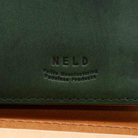 素材には、モイストオイルレザーを使用。姫路のタンナーでオイルに一週間寝かした後、さらにオイルを加えることでしっとり柔らかい質感を生み、仕上げにワックアイロンでツヤを加えています。プールアップ加工により折り曲げた部分が白化していくので、使い方によって違った個性の経年変化をお楽しみ頂けます。