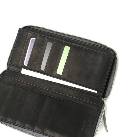 ※使用しているアルミファスナーは素材の性質上、ファスナーの開閉によってアルミの粉が生地を汚す場合がございます。また、はじめはファスナーに引っ掛かりを感じる場合がございますが、使用回数によって軽減されます。ファスナーの特性として、ご了承ください。