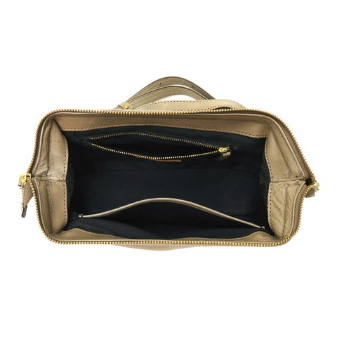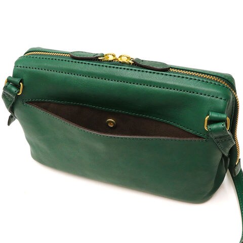 江戸時代から皮革産業に歴史のある兵庫県たつの市の徳永雅信革所で、原皮から鞣しまでを一貫して国内で仕上げた純国産ベジタブルタンニンレザーを使用した、横型ミニショルダーバッグ。オイルをたっぷりと加えて寝かせることで、革の繊維を柔らかくし、しっとりとした質感に仕上げています。国内レザーならではの細やかな調整のもとで完成された本体は、使う程に馴染んで艶が増していくのが魅力。エイジングをお楽しみいただきながらご愛用いただけるアイテムとなっております。