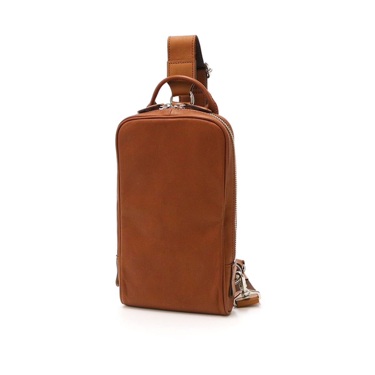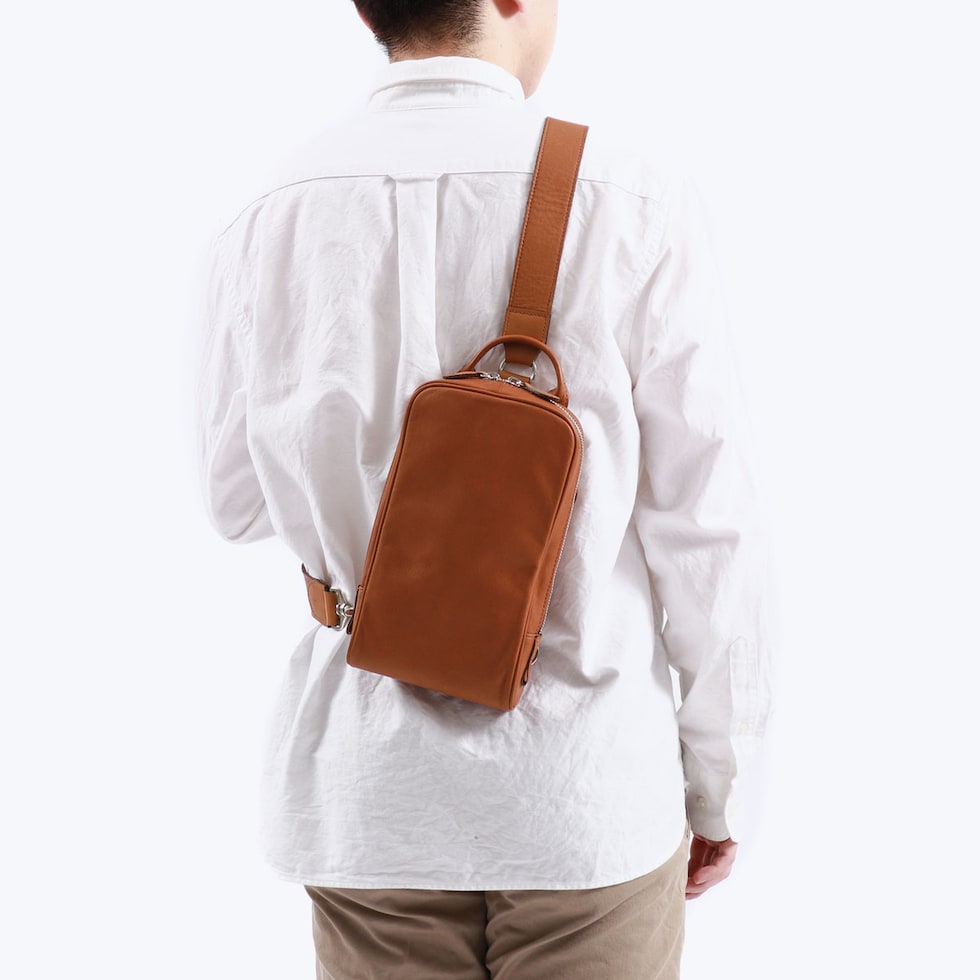 姫路産ワックスオイル仕立てのマットオイルレザーを使用したシリーズ「MAT」のボディバッグ。革らしい天然のシボ感が魅力的で、最初はマットな風合いですが、年月と共に深い風合いへと変化し、繊維がほぐれるクッタリ感と、独特の光沢感を生み出します。収納部は、スマホや財布など、外出時の必需品のみをすっきりとしまえて便利。背面ポケットは左右どちらからでもアクセス可能で、移動時も使いやすいよう配慮されています。