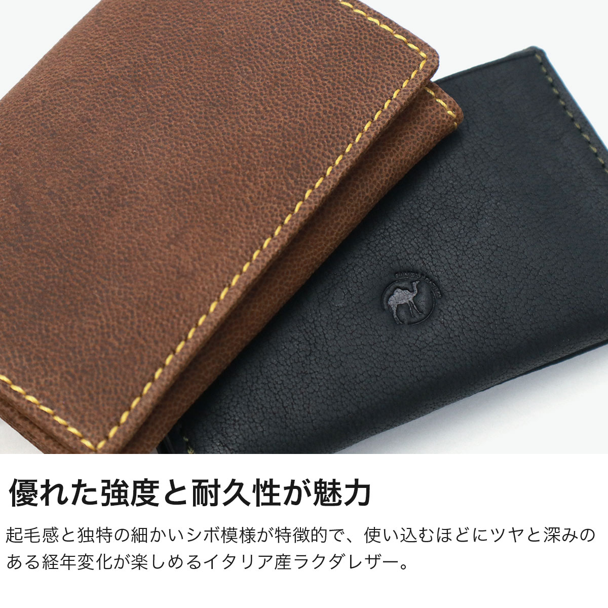 強度の優れたイタリア産のラクダレザーを使用した『RAKUDA/ラクダ』シリーズの名刺入れです。軽やかで柔らかな質感に、上品な起毛感と細やかなシボが魅力です。使い込むほどに艶と風合いが深まり、経年変化を楽しめる逸品。採取量が限られた希少な素材で、大人の手元に品格を添えます。