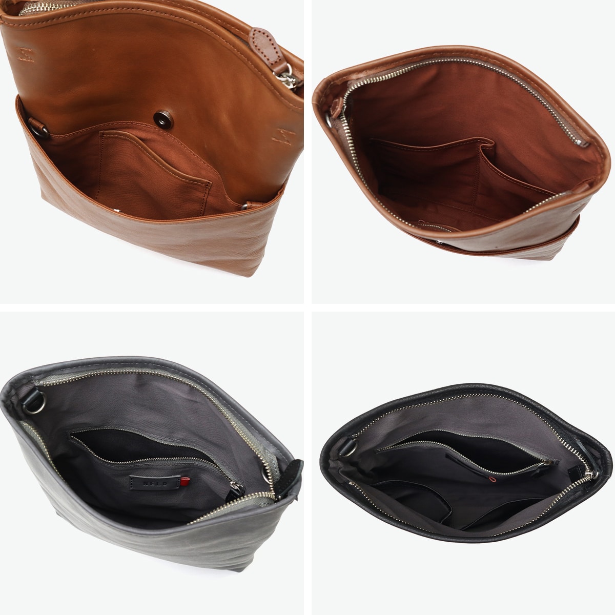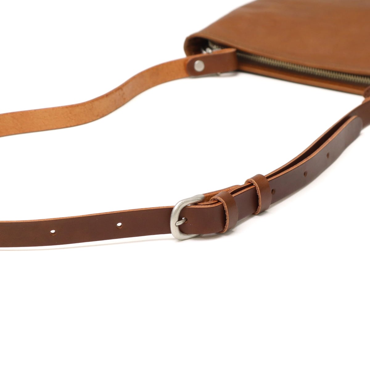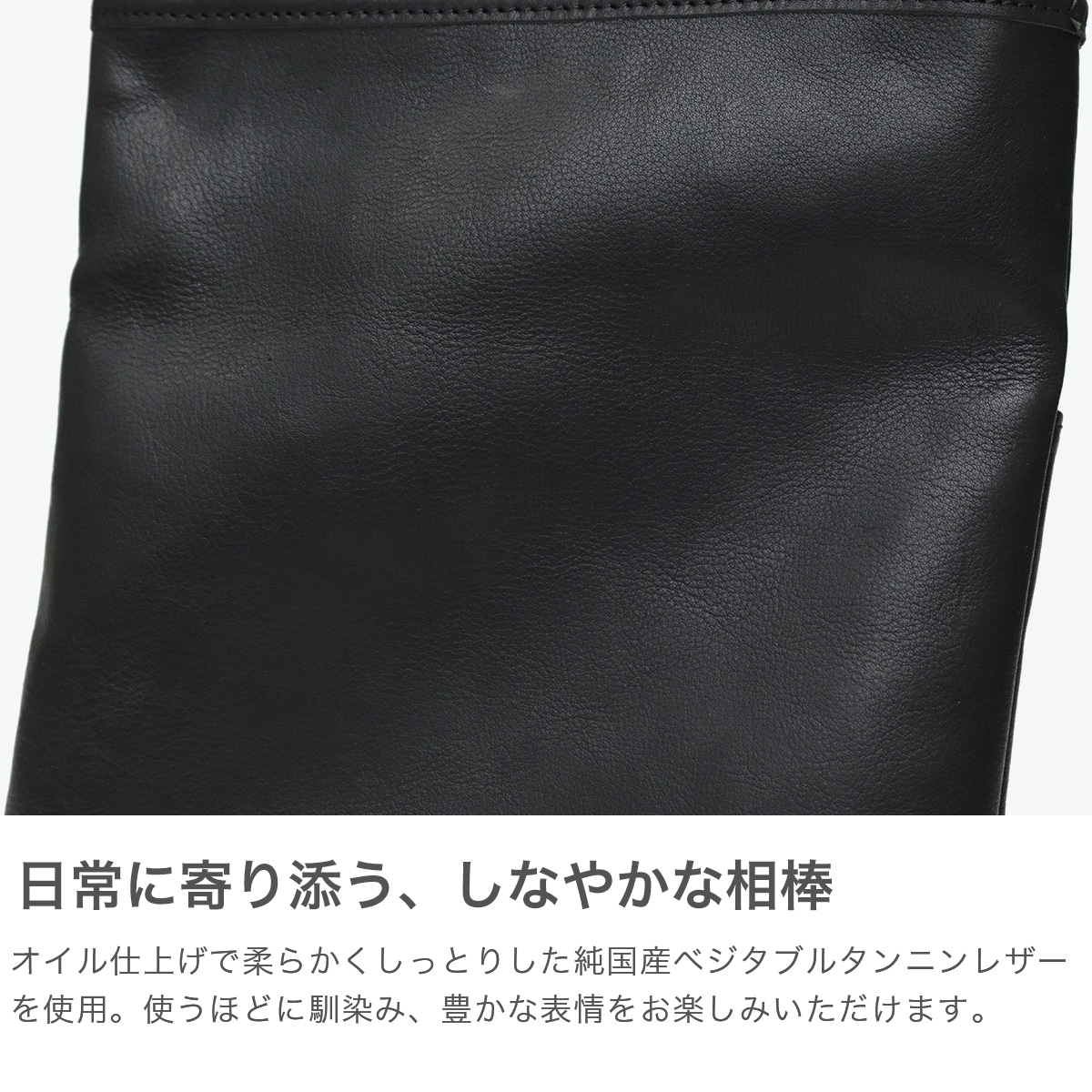 江戸時代から続く皮革の産地・兵庫県たつの市で、原皮から鞣しまで一貫して仕上げた純国産ベジタブルタンニンレザーを使用したショルダーバッグです。自然なシワと豊かな表情、オイルでしっとりと仕上げた柔らかな風合いが魅力です。背面ポケット内のDカンにより、口折れ仕様にもなる2WAYデザイン。上質を日常に取り入れる、大人のためのレザーバッグです。