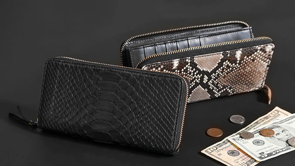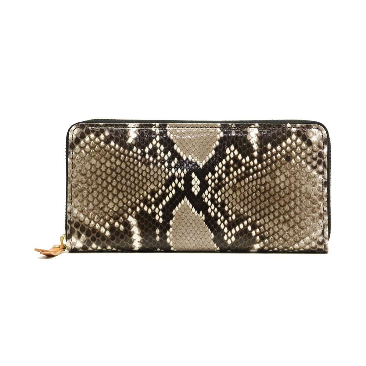 ダイヤ型の斑紋が美しく並ぶダイヤモンドパイソンの革で仕立てたシリーズ『HEBI/ヘビ』のラウンドファスナー長財布。素材そのものの魅力を引き出した仕上がりが最大の魅力となっています。落ち着いた色味で上品さと高級感のあるアイテムです。