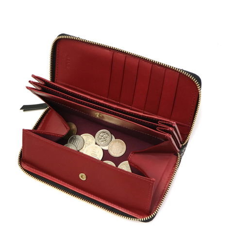 収納部はカードポケット数を充実させており、普段カードを多く持ち運ぶという方にオススメ。札入れもササマチ仕様なので束で管理でき、さらに小銭入れも長財布だからこその贅沢なスペース使いでたっぷりと収められます。チケットやレシートなどを、折り目をつけずに保管できるフリーポケットも備えました。