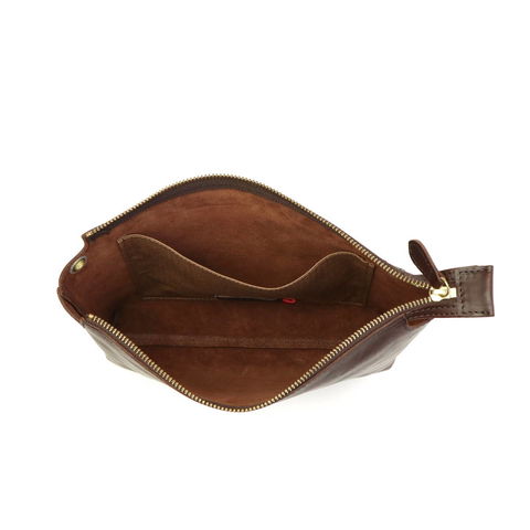 A5サイズ対応のメイン収納部は、横幅に加え程よくマチ幅もあるので、長財布やハンドタオル、小説本などを収めるのに丁度良いサイズ感となっています。国産のブラックウォッチ柄の内ポケットはシンプルな内装に彩りを施し、スマートフォンなどの小物の仕分け管理スペースとしても役立ちます。