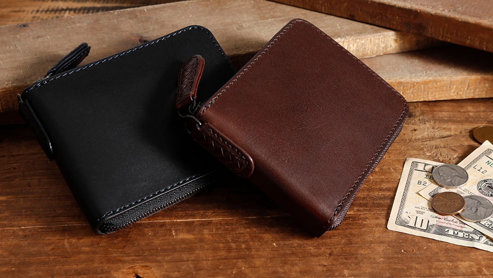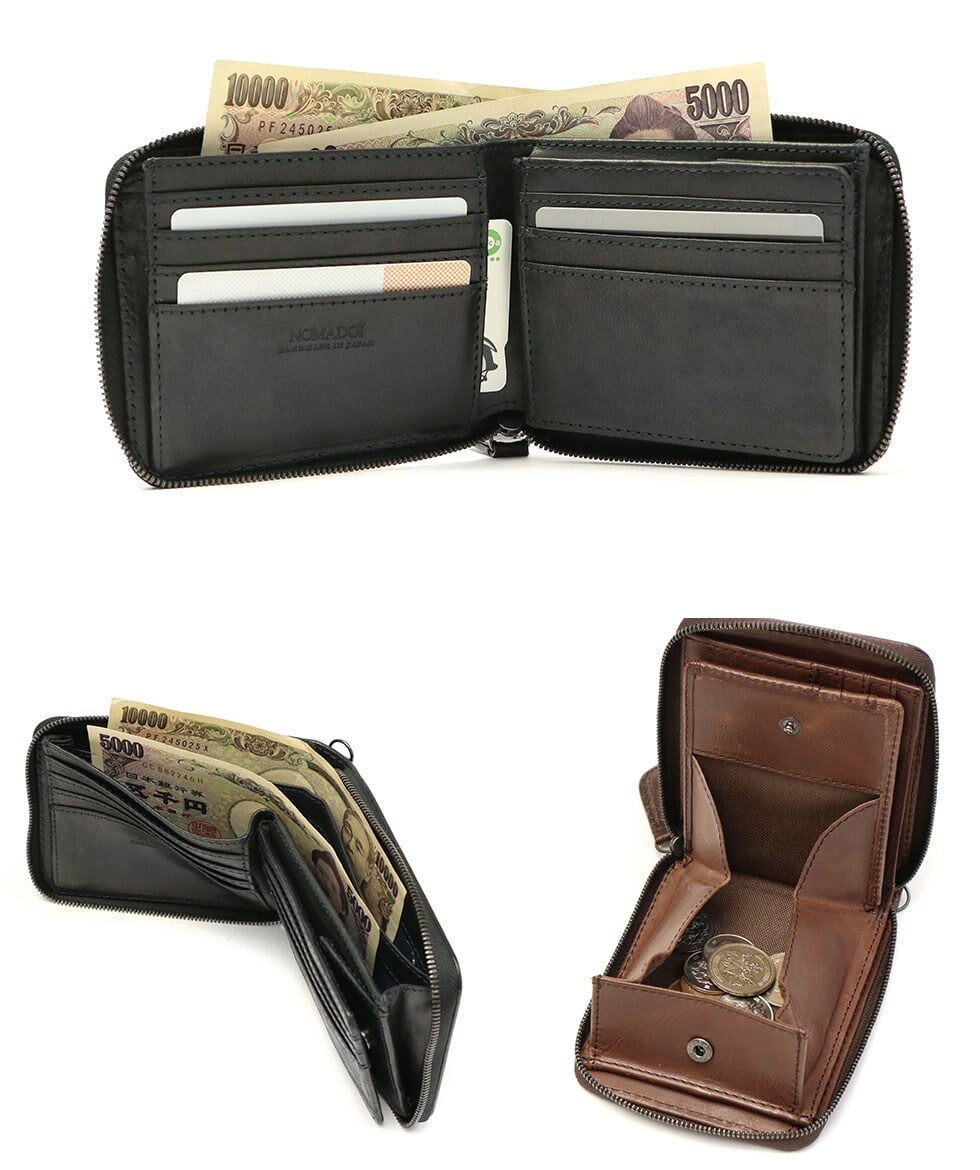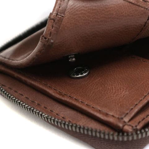 本体はコンパクトに収納機能が凝縮された二つ折りタイプ。多彩なポケットを備えたことで、クレジットやポイントカードを頻繁に使うという方には特に使いやすさを実感していただけるはず。また、小銭入れはBOX型で取り出しやすく、札入れも仕分けが可能な仕切り付きという優秀な設計です。