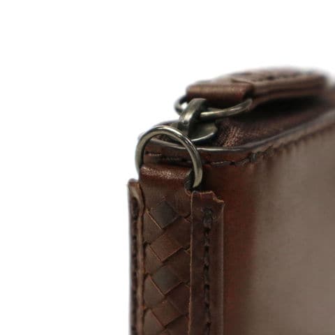本体生地にはしなやかなタンニン鞣しのオイルレザーを採用し、日本の職人が一つ一つ手作業で丁寧に仕上げました。長きに渡る使用に耐える強固な作りで、味わいが増していく経年変化もお楽しみいただけます。シンプルな外観に、イントレチャートを施したディテールが程よいアクセントとなっています。