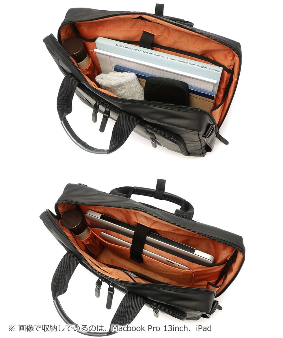 仕様 |[外側] ・ジップポケット(M)×1[メッシュポケット(XS)×1、ポケット(XS)×2、ペンホルダー×2、キーフック×1 内蔵] ・ジップポケット(M)×1 ・ポケット(XS)×1 [内側] ・PC収納×1 ・タブレット収納 ・ジップポケット(L)×1 ・メッシュポケット(S)×2 ・ポケット(XS)×1 [付属品] ・ショルダーストラップ×1