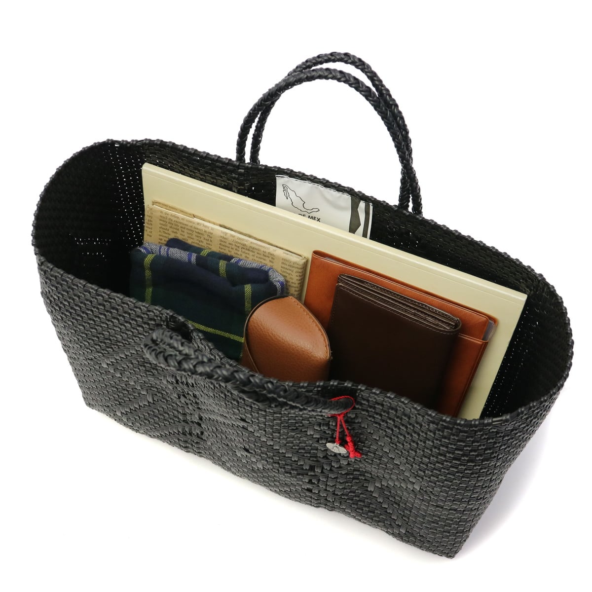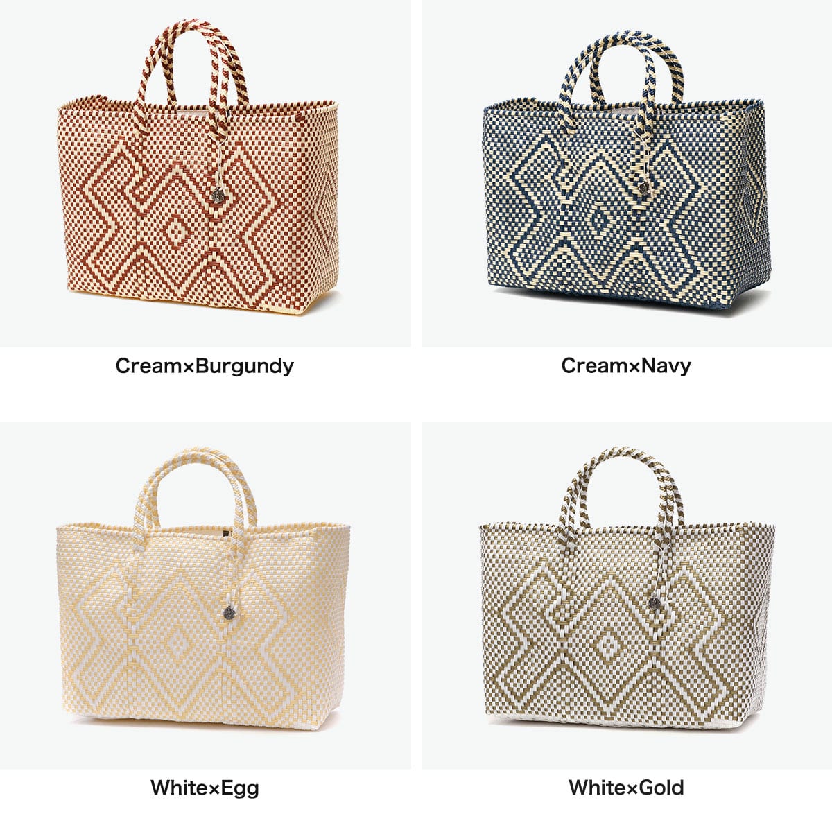 メキシコのエッセンスやカルチャーを盛り込んだ『OJO DE MEX/オホデメックス』のトートバッグ。プラスチックのコードを丁寧に編み上げ、軽く丈夫な仕上がりです。メキシコの市場でお買い物に使われる「メルカドバッグ」をモチーフにし、いつもと違った雰囲気のスタイルを楽しめます。