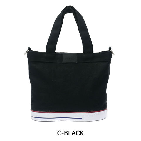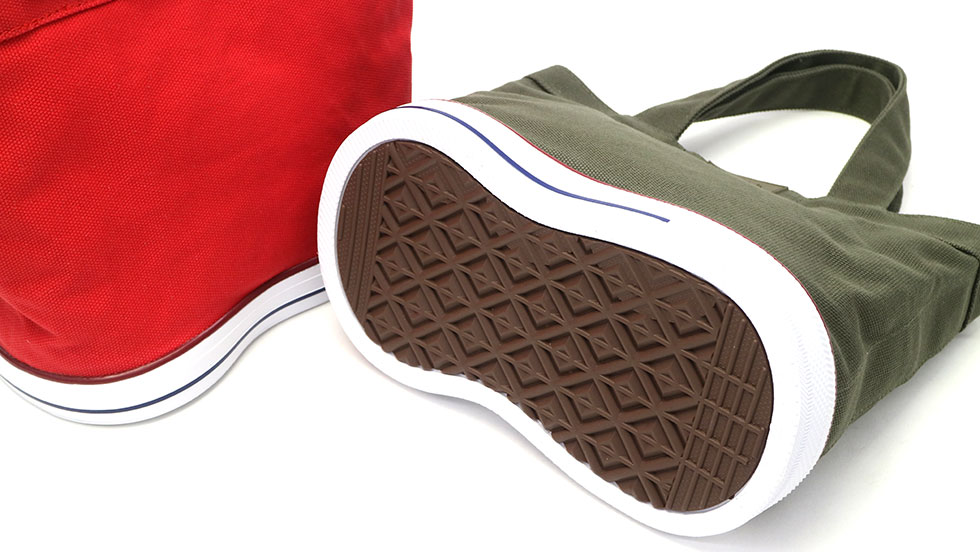 厚めのスニーカーソールがしっかりとバッグを自立させ、遊び心のあるデザインで床に置いた姿も「絵になる」バッグです。また、本体にはハードユースにも耐える6号帆布を使用し、普段使いからアウトドア・レジャーに使いやすい仕上がり。