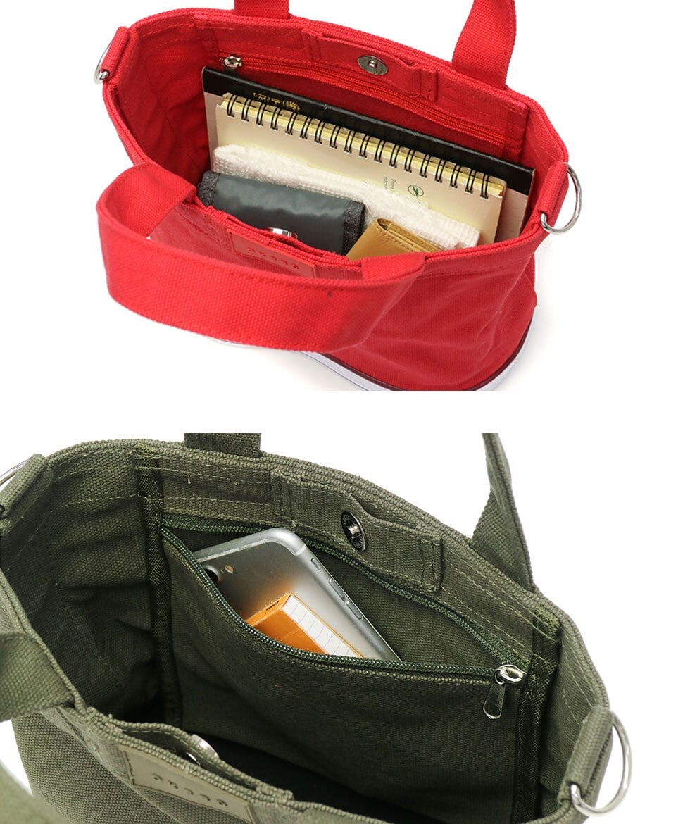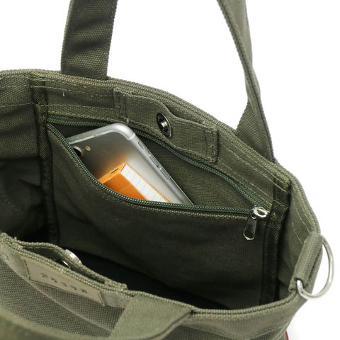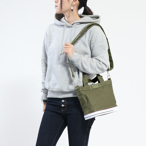 取り外し可能なショルダーベルトが付属しているので、シーンに応じて手持ち、肩掛け、斜め掛けと持ち方が選べるのもうれしいポイント。ナチュラルな風合いの帆布がカジュアルファッションとも相性がよく、コーディネートのアクセントになります。