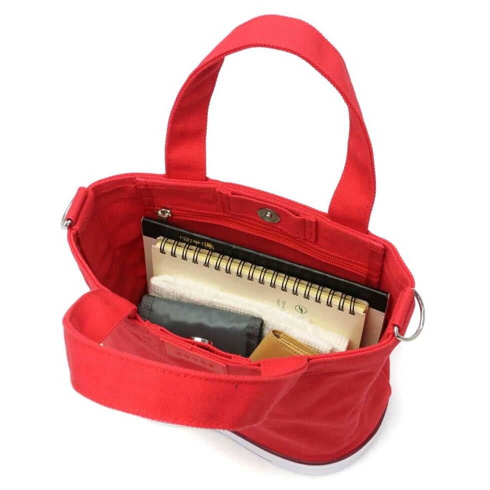マチのあるトートバッグとして使いやすく、ちょっとしたお出かけにも気兼ねなく持ち出せる便利なサイズ。お財布やポーチ、ペットボトルなど外出に持ち歩きたいアイテムがしっかり収まります。ソールがしっかりしているので安定感があるのもポイントです。