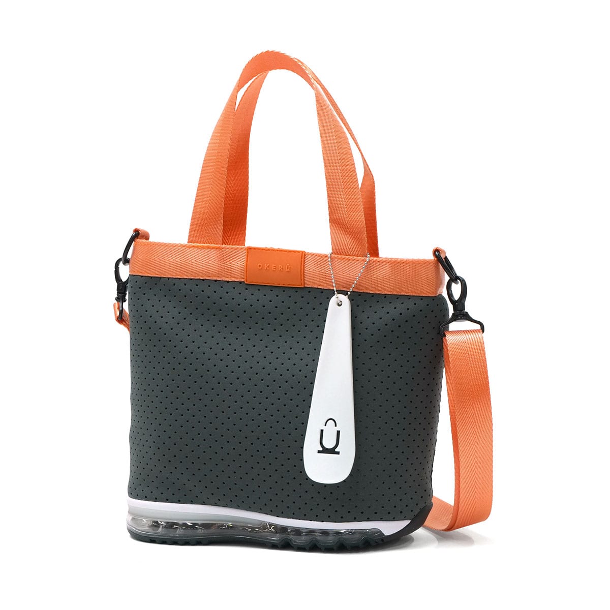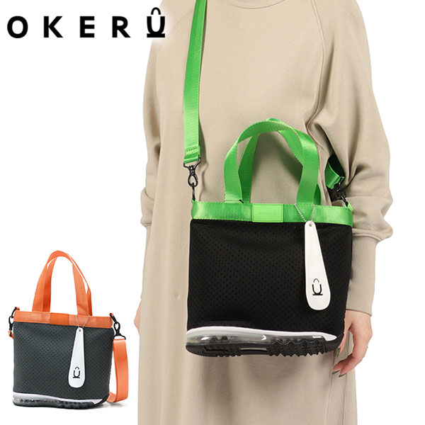 「バッグが靴を、履いたなら。」"OKERU=置ける"をコンセプトに、バッグと靴のソールを合体させた「シューズバッグ」という新しいプロダクトをデザインする『OKERU』の2WAYトートバッグ。ネオンカラーのテープがアクセントになり、スタイリングに遊び心をプラス。取り外し可能なショルダーストラップ付きの2WAY仕様。床や地面に気兼ねなく置ける実用性と、視線を集めるユニークさを兼ね備えた一品です。