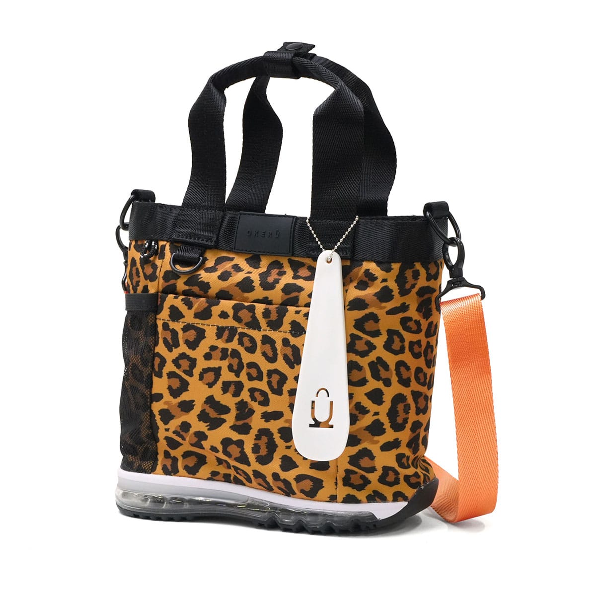 「バッグが靴を、履いたなら。」"OKERU=置ける"をコンセプトに、バッグと靴のソールを合体させた「シューズバッグ」という新しいプロダクトをデザインする『OKERU』の2WAYトートバッグ。アニマル柄プリントで遊び心を演出し、カラーとブラックのショルダーストラップが付属して気分に合わせて使い分け可能です。汚れを拭き取りやすいライニングで、普段使いからペット散歩、アウトドアまで活躍します。床に気兼ねなく置ける実用性とユニークなデザインが魅力の一品です。