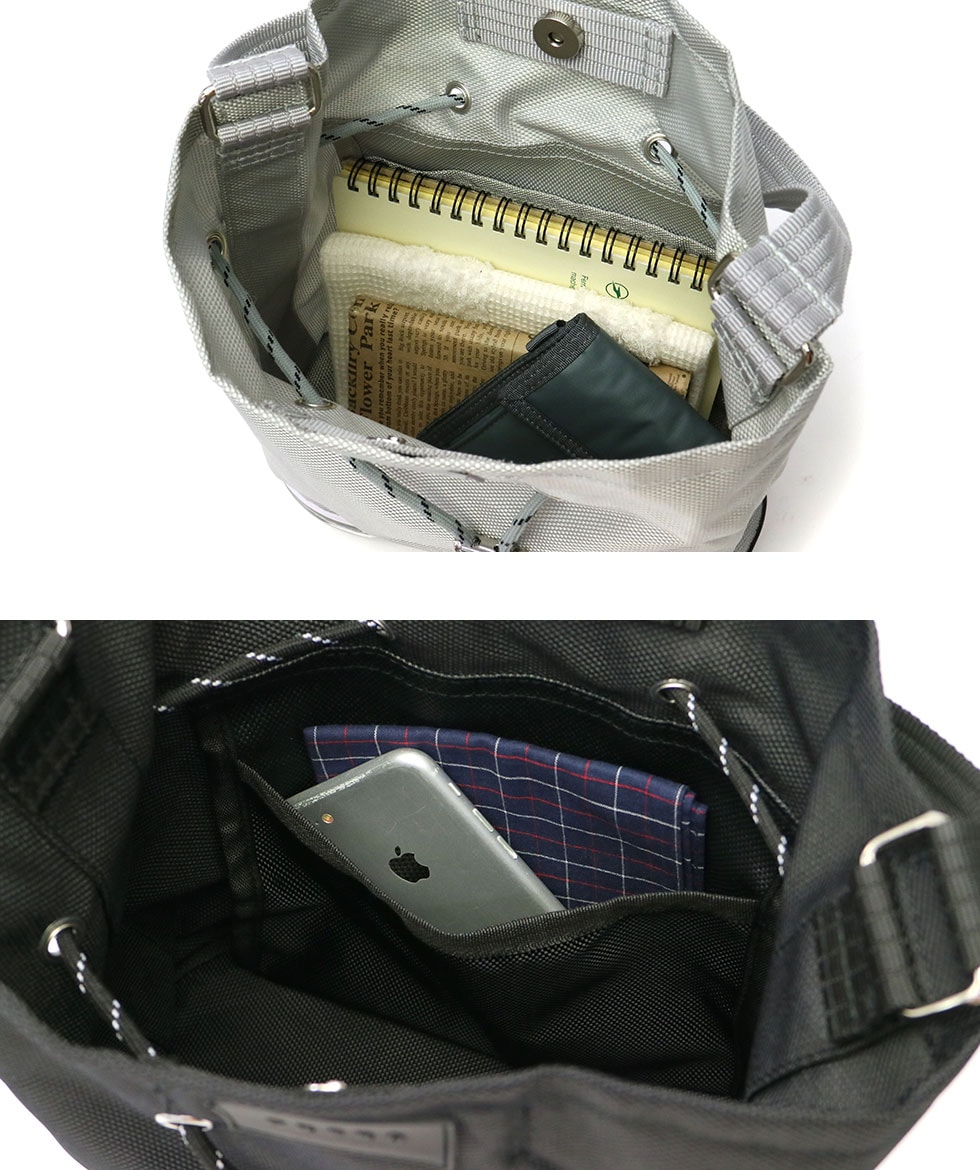 マグホック開閉のメイン収納部は、ペットボトルもしまえるお出掛けにちょうどいいサイズです。内装は、ポケットをひとつ設けたシンプルなつくりとなっており、小物類も散らばることなく収納可能。ソールがしっかりしているため、安定感も抜群です。