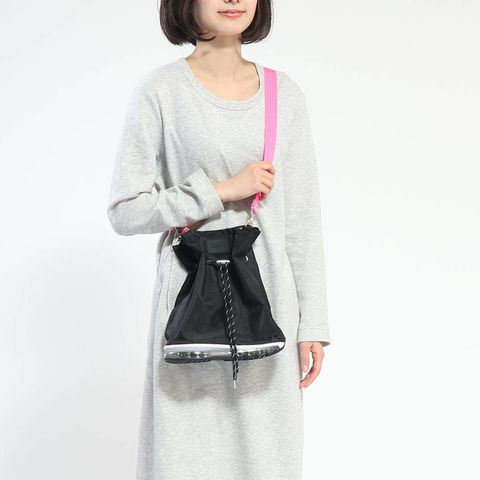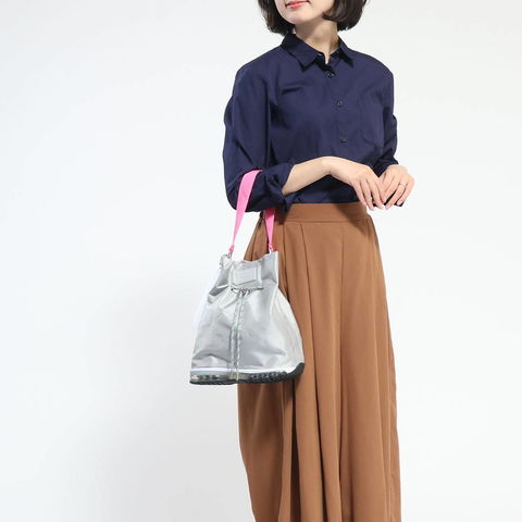 本体には、取り外し可能なショルダーストラップが付属。気分やスタイリングに合わせて、使い分けることができるのもポイントのひとつです。光沢感のある素材は、スポーツミックスなスタイルと相性抜群です。