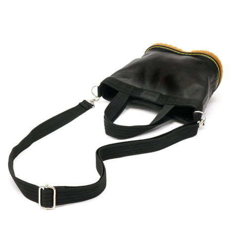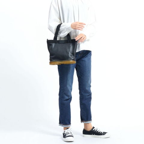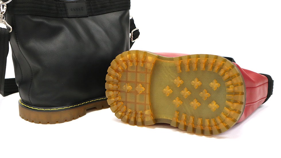 ブーツのデザインを落とし込んだソールがしっかりとバッグを自立させ、床に置いた姿も「絵になる」デザイン。素材にはクロムで鞣した北米産の牛ステアを使用し、しなやかかつ丈夫で日常使いしやすいつくりとなっています。