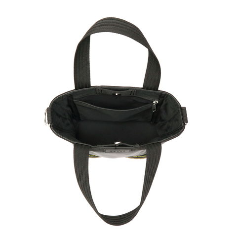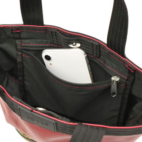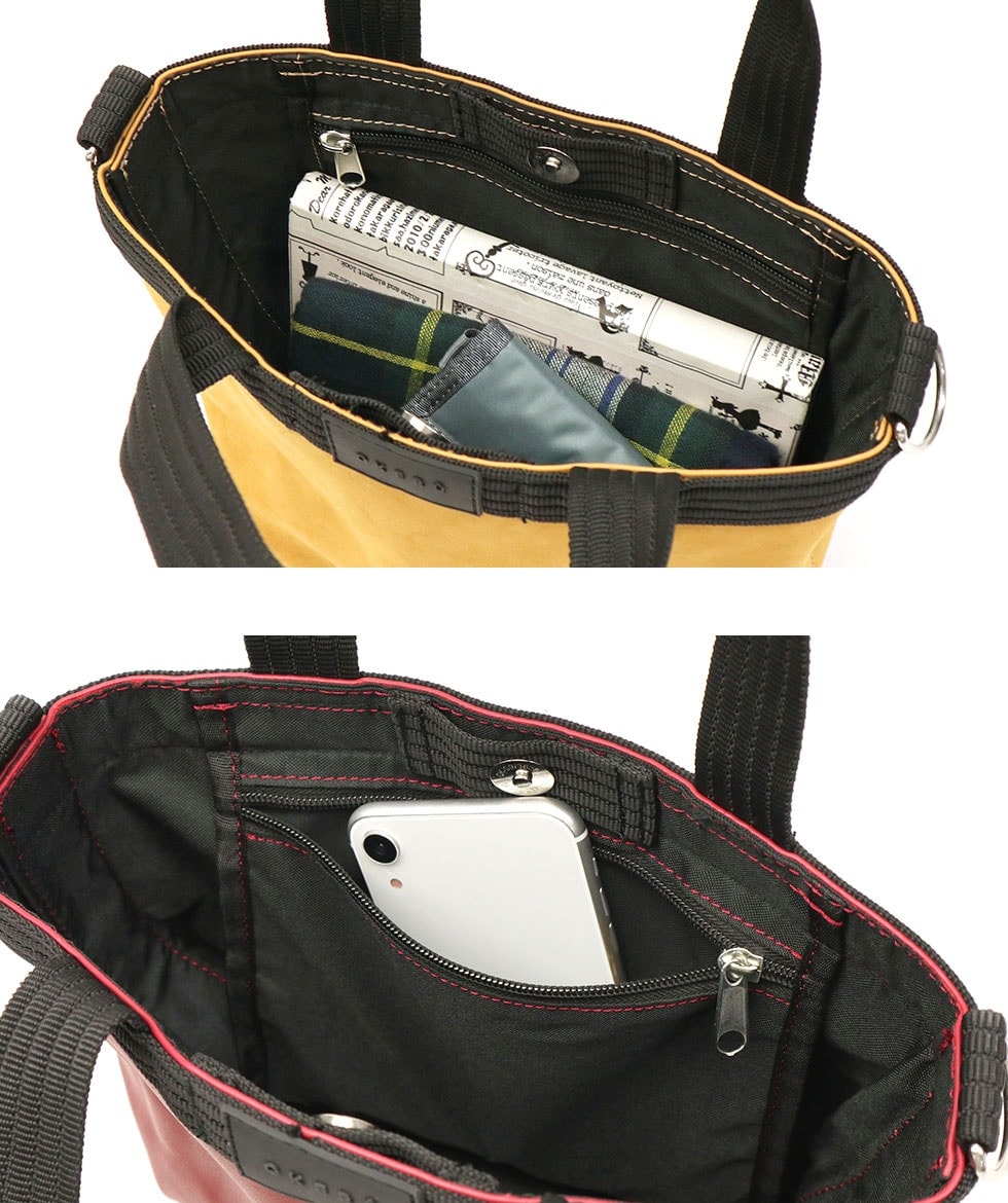A5サイズがぴったり収まるメイン収納部は、普段持ち歩く財布やスマホ、ポーチなどの収納にぴったりなサイズ感です。内装はシンプルにポケットが1つ備えられたデザインで、小物類もすっきりと収納可能。また、底がしっかりとしたつくりなので安定感があるのもポイントです。