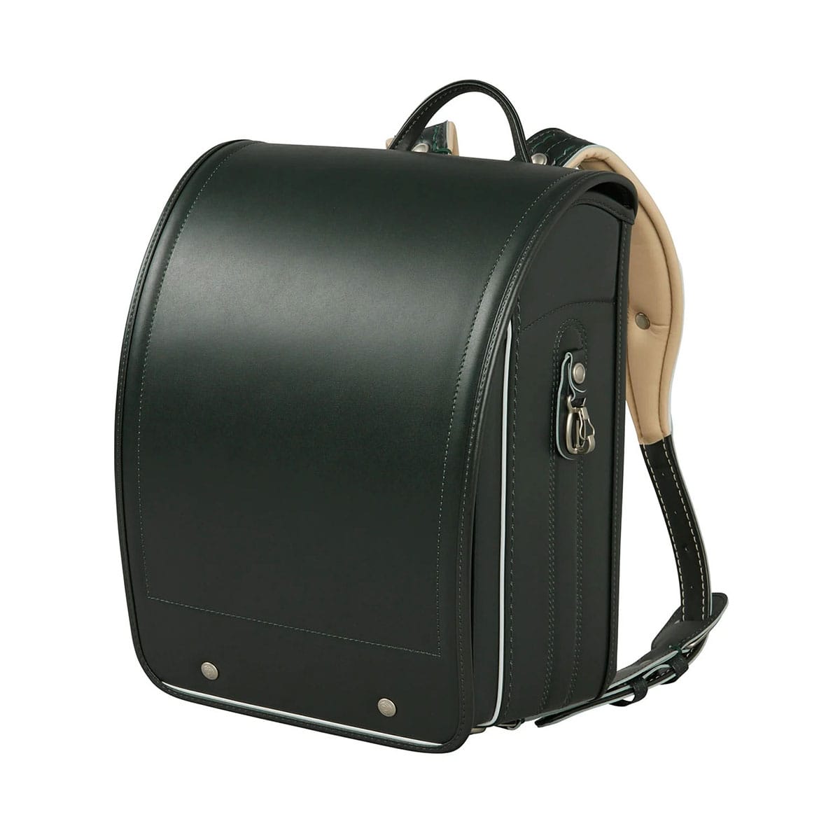 人工皮革とのハイブリッド構造により、総牛革製に比べて軽量ながら、しっかりとした強度と美しさを保つ「牛革スーパータフ・ハイブリッド」。特許形状「トラピーズ」で、A4フラットファイルが無理なく収まり、背負った姿もスマートに見える設計です。肩にフィットする「マミーズタッチ」ベルト、通気性に優れた「ソフトリー」の背当て、体感重量を軽減する「立ち上がり背カン」など、成長期の体にやさしく寄り添う機能も充実。リフレクターや撥水素材で、安全性や天候への配慮も抜かりなく、6年間安心して使えるランドセルです。