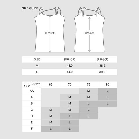 バスト 約 86~94|着丈(前中心丈) 約 44|着丈(後ろ中心丈) 約 39(cm)
