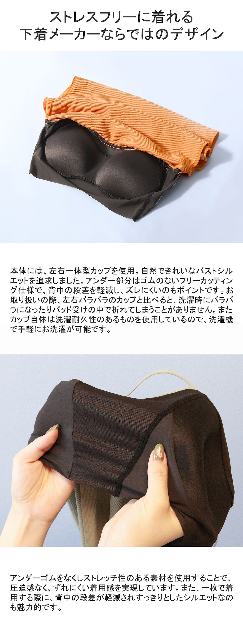 下着のワコールが手掛ける、機能性と高いデザイン性を両立したキャミソール。ワコール独自のカップと服を一体化したデザインで、美しくボディラインを整え、一枚で、また組み合わせてもフレキシブルに自分らしい着こなしをお楽しみいただけます。