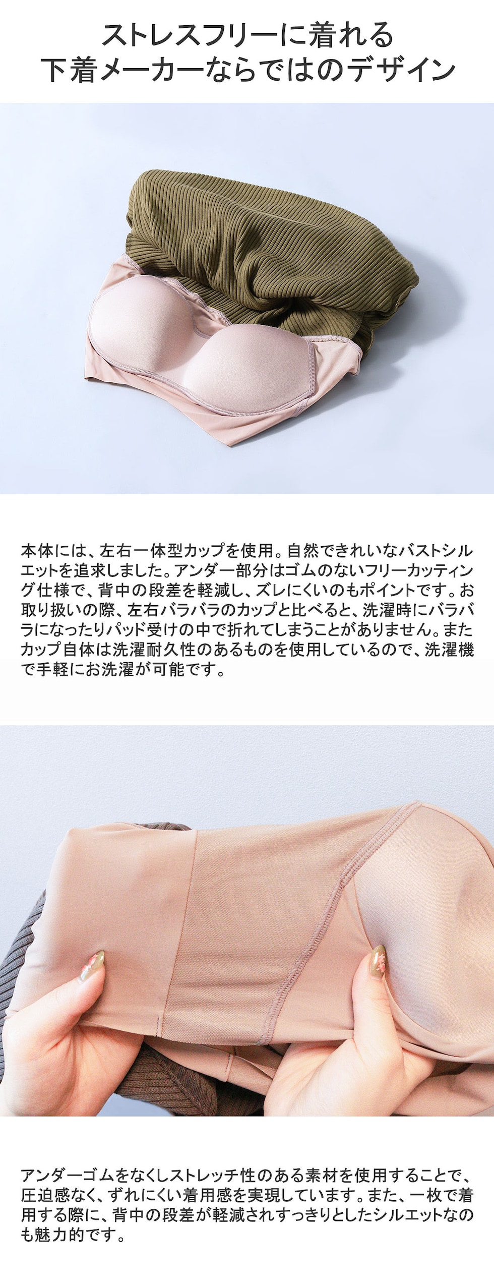 下着のワコールが手掛ける、機能性と高いデザイン性を両立したバックオープンリブTシャツ。ワコール独自のカップと服を一体化したデザインで、美しくボディラインを整え、一枚で、また組み合わせてもフレキシブルに自分らしい着こなしをお楽しみいただけます。