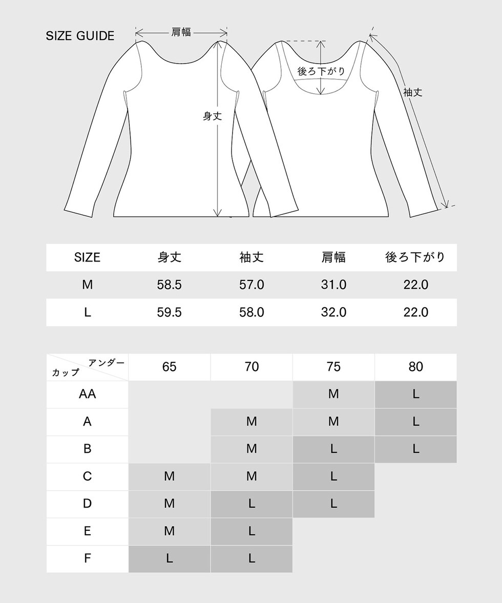 バスト 約 79~87|身丈 約 58.5|袖丈 約 57 |肩幅 約 31|後下がり 約 22(cm)