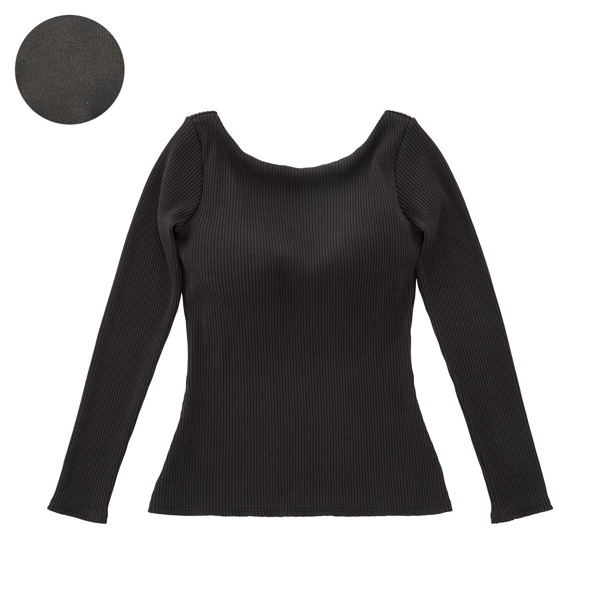 【セール】アワワコール Tシャツ バックオープン レディース 長袖 無地 OUR WACOAL トップス カップつき パット インナーウェア M L 無地 シンプル アンダーウェア 肌着 カップインバックオープンリブTシャツ JCX538
