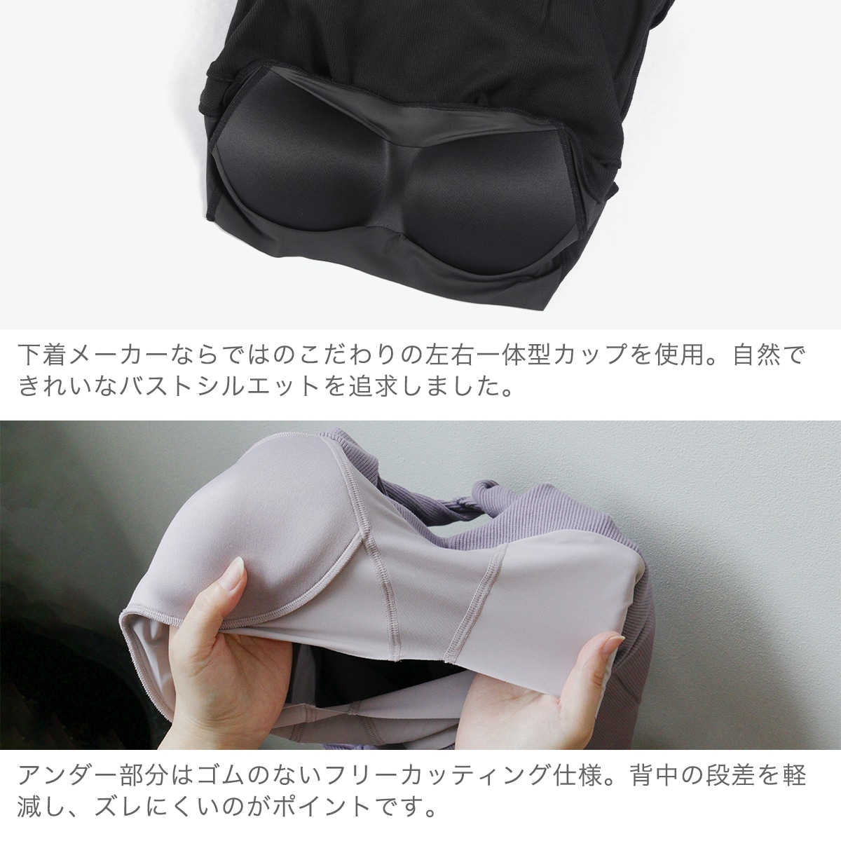 下着のワコールが手掛ける、機能性と高いデザイン性を両立したカップインワンピース。ワコール独自のカップと服を一体化したデザインで、美しくボディラインを整え、一枚で、また組み合わせてもフレキシブルに自分らしい着こなしをお楽しみいただけます。