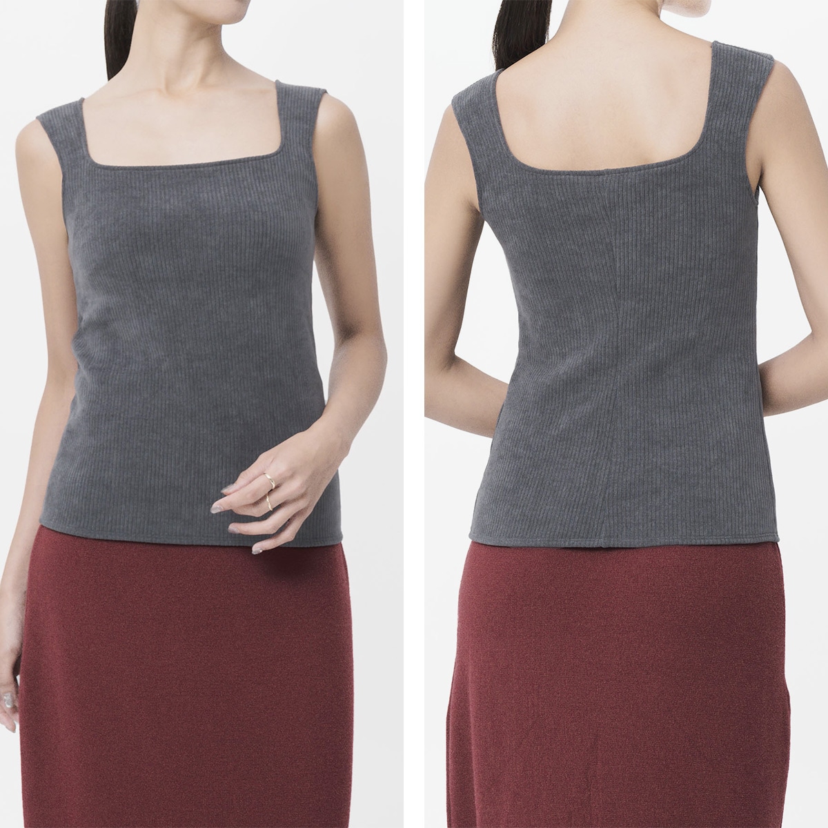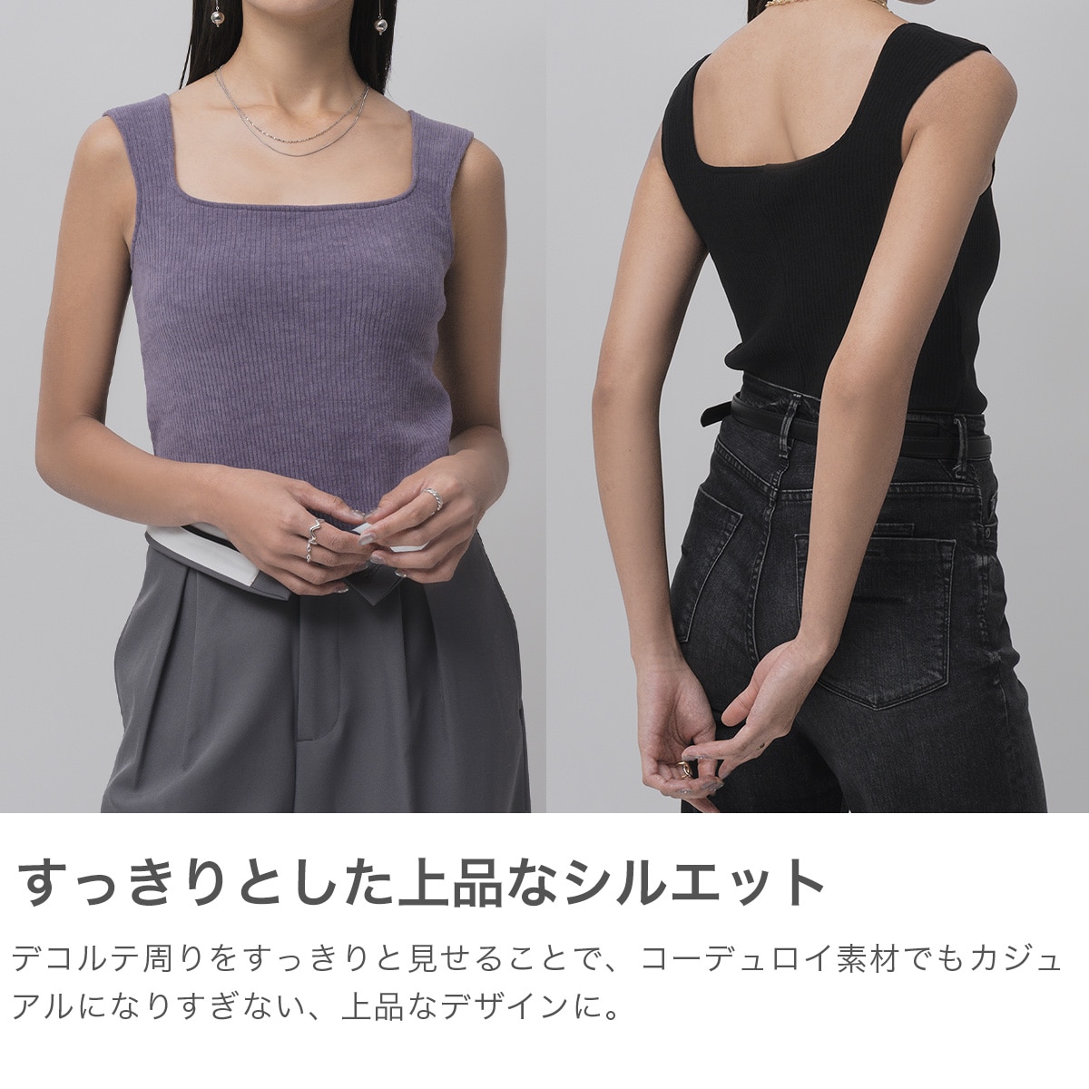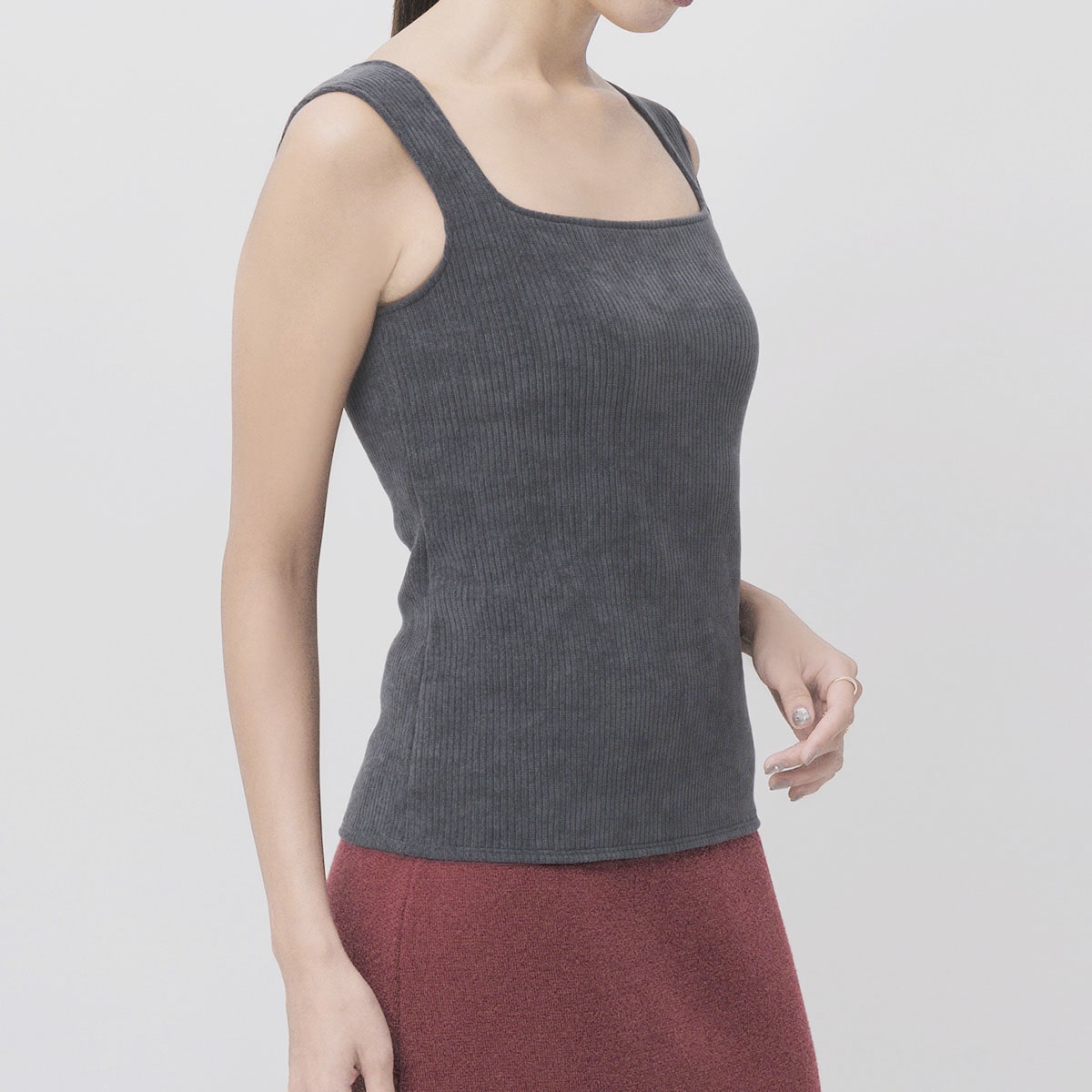 シルエット感にこだわった、カップ付きのタンクトップです。コーデュロイ素材とニュアンスのあるカラーが、落ち着きのある雰囲気を演出。1枚でも上にジャケットを羽織っても、コーデの雰囲気を秋冬っぽく仕上げてくれます。下着メーカーならではのこだわりが詰まったカップは、自然で綺麗なバストシルエットを追求しました。