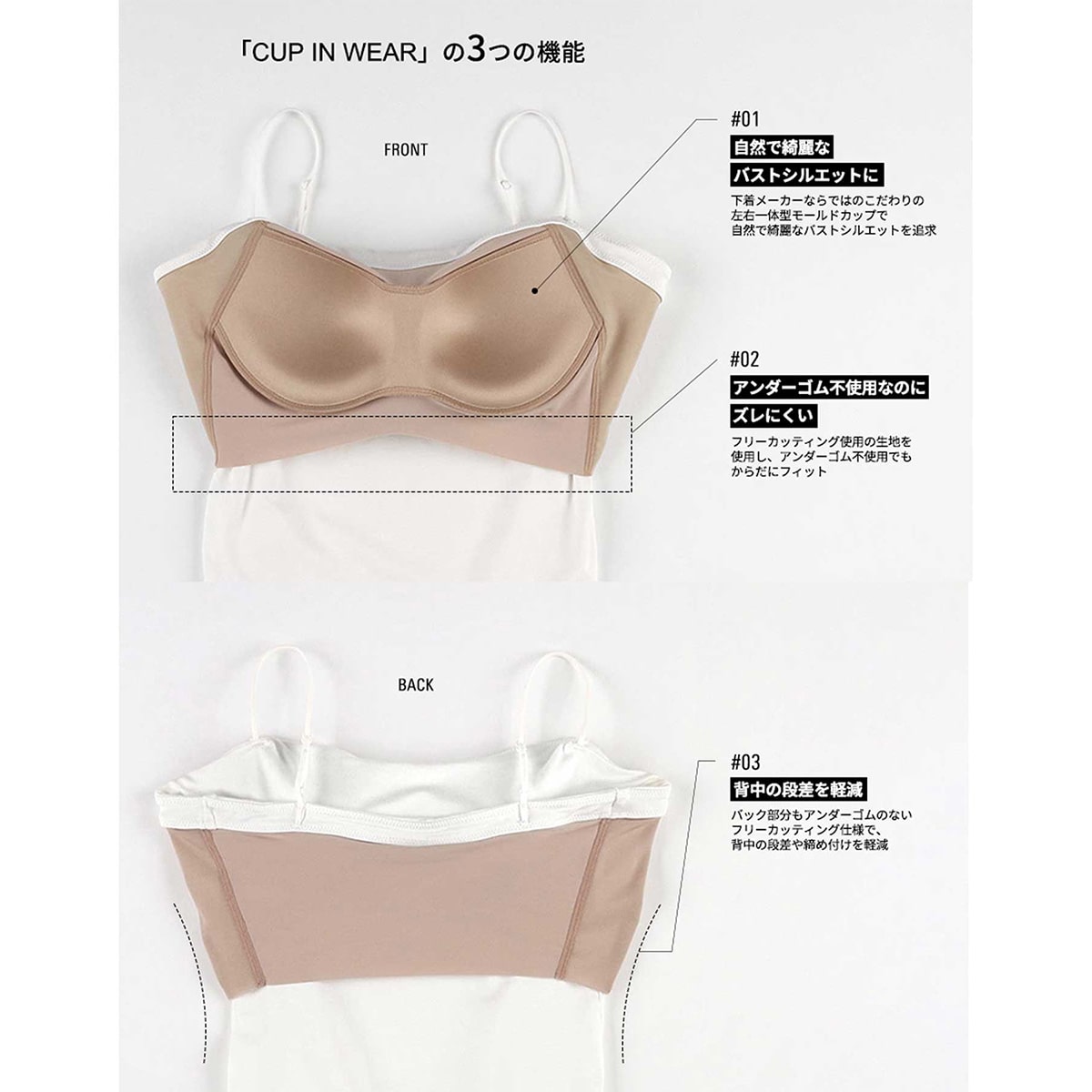 アワワコール キャミソール OUR WACOAL カップ付き レディース ノンワイヤー 無地 ブランド おしゃれ ストラップ調整 インナーウェア ブラトップ キャミ S M M+ L L+ カップインベアキャミソール インナー