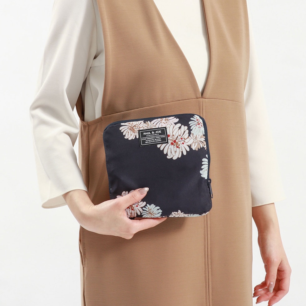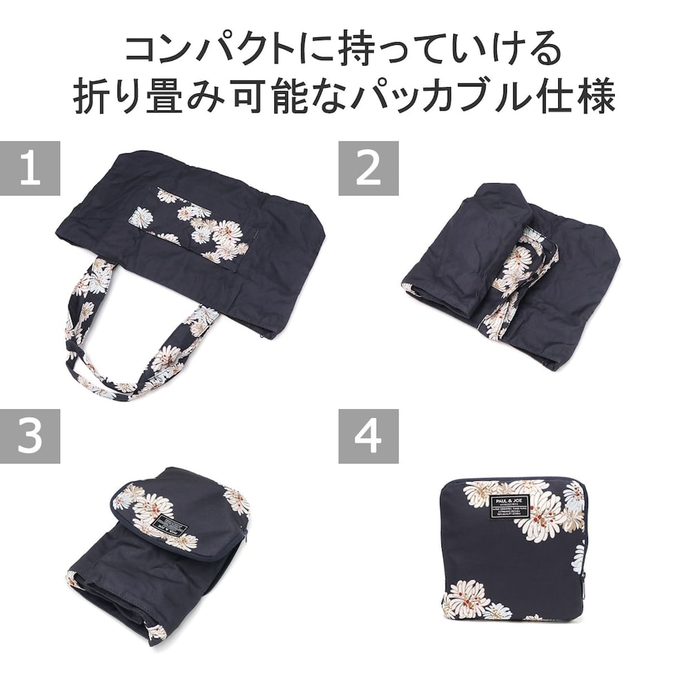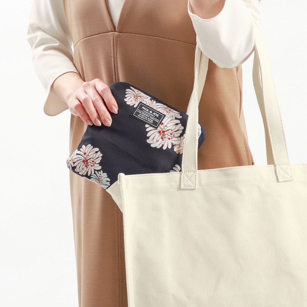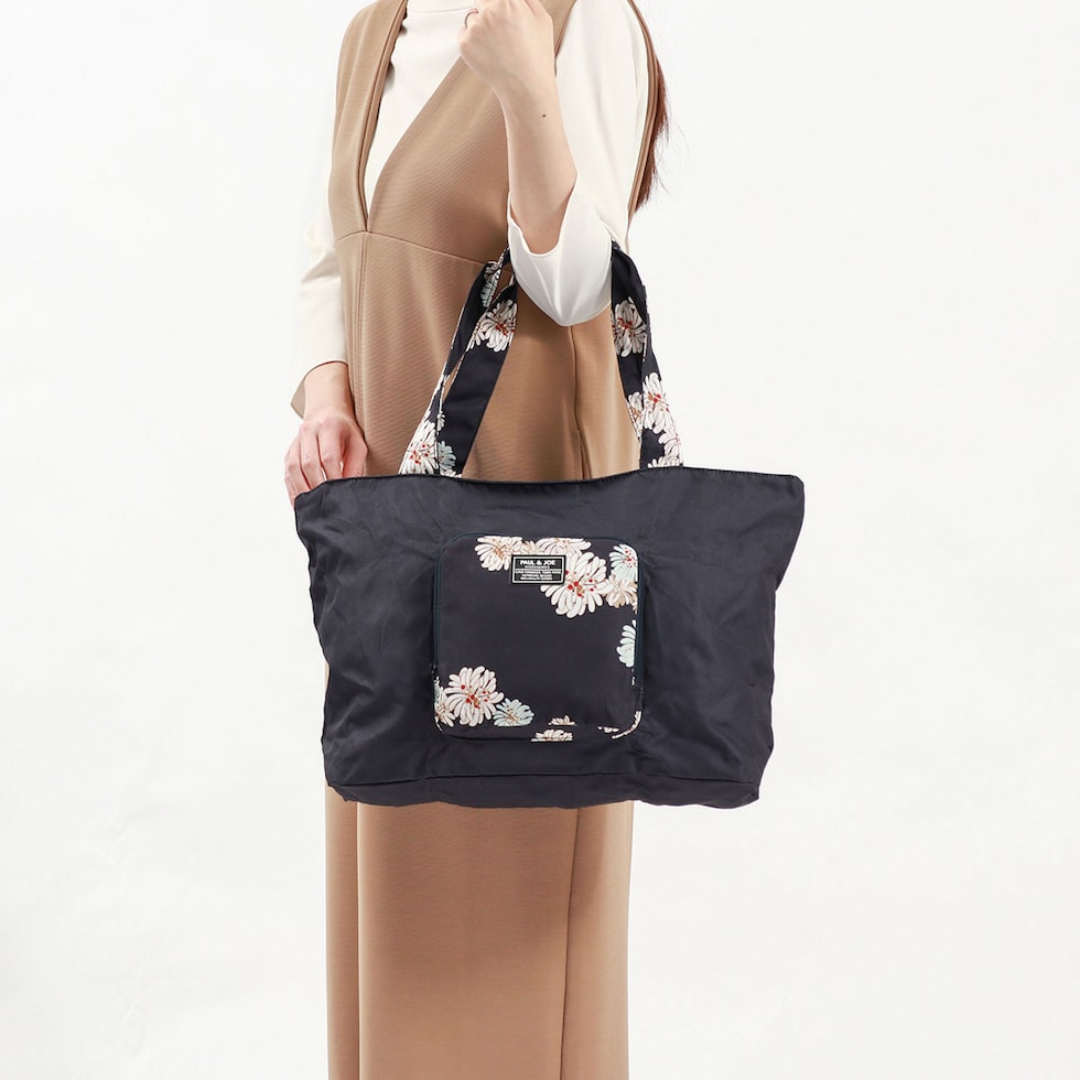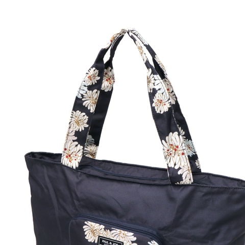 PAUL&JOEらしい華やかな「クリザンテーム」柄の上品さ溢れる折り畳みトートバッグです。軽量なポリエステルを使用しており、買い物やジムなどのお出かけにピッタリ。また、背面の通し穴にキャリーバッグのハンドルを通せばキャリーオンバッグにもなり、旅行にも便利なアイテムとなっています。