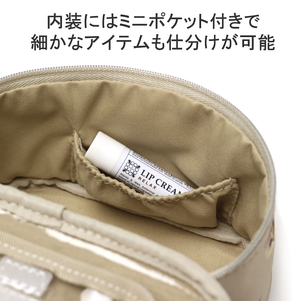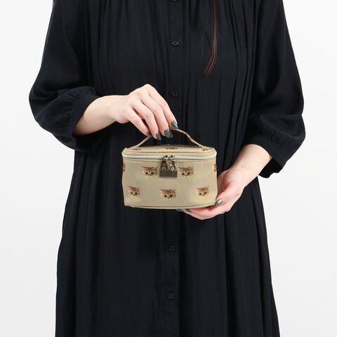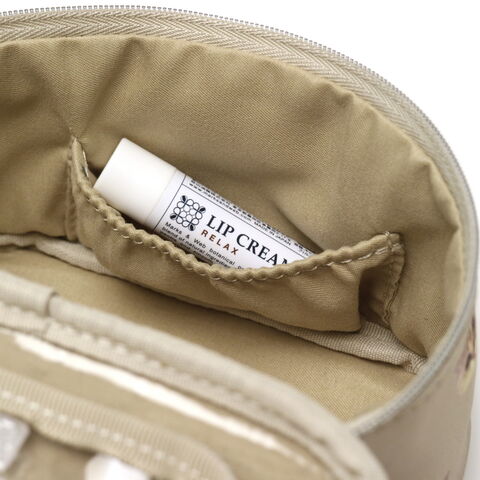 大人気のヌネット総柄シリーズがリニューアルして登場。こちらはコスメや小物の収納に便利な持ち手付きのポーチです。高さとマチをしっかりと設けているため、コンパクトでも収納力は抜群。スリムなフォルムなので、バッグの中に入れてもかさばらずに持ち歩きやすくなっています。