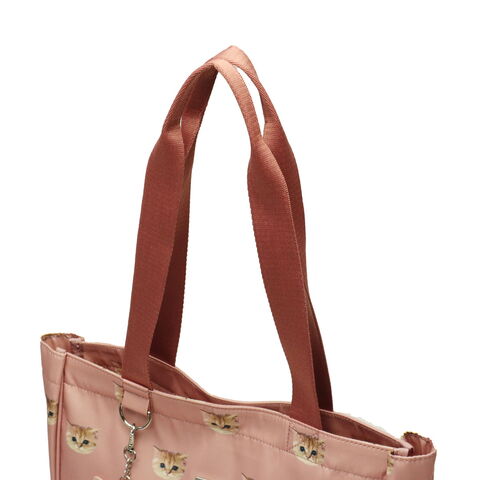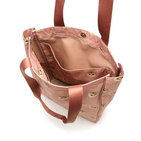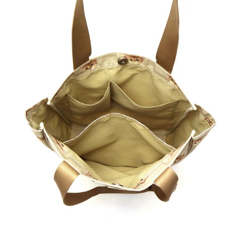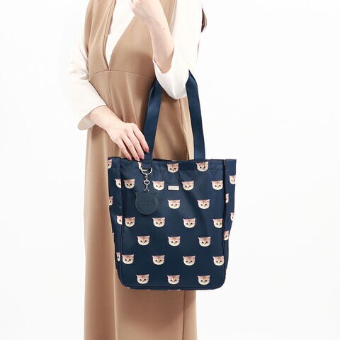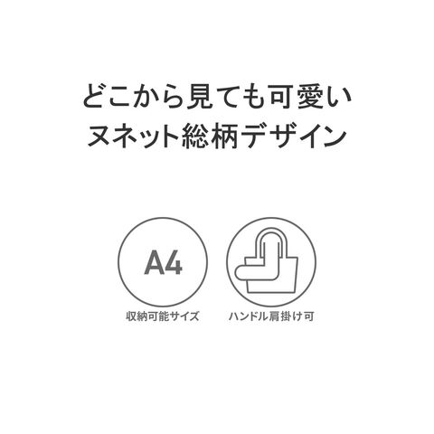 大人気のヌネット総柄シリーズがリニューアルして登場。こちらは、使い勝手の良い縦型トートバッグです。長めの持ち手で肩掛けしやすく、通勤・通学や習い事にもおすすめ。可愛らしいデザインながら、底板や小物ポケットを内装した実用的なつくりがポイントです。