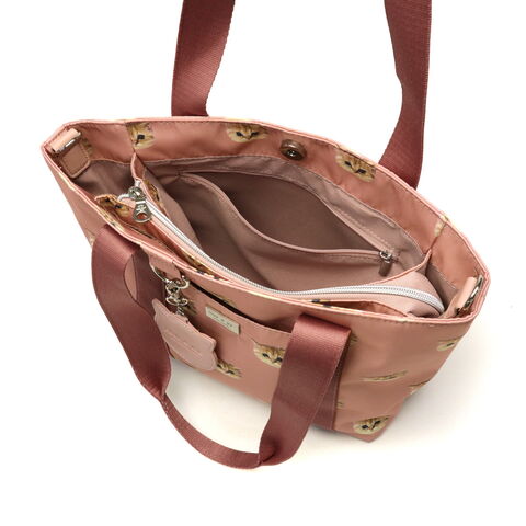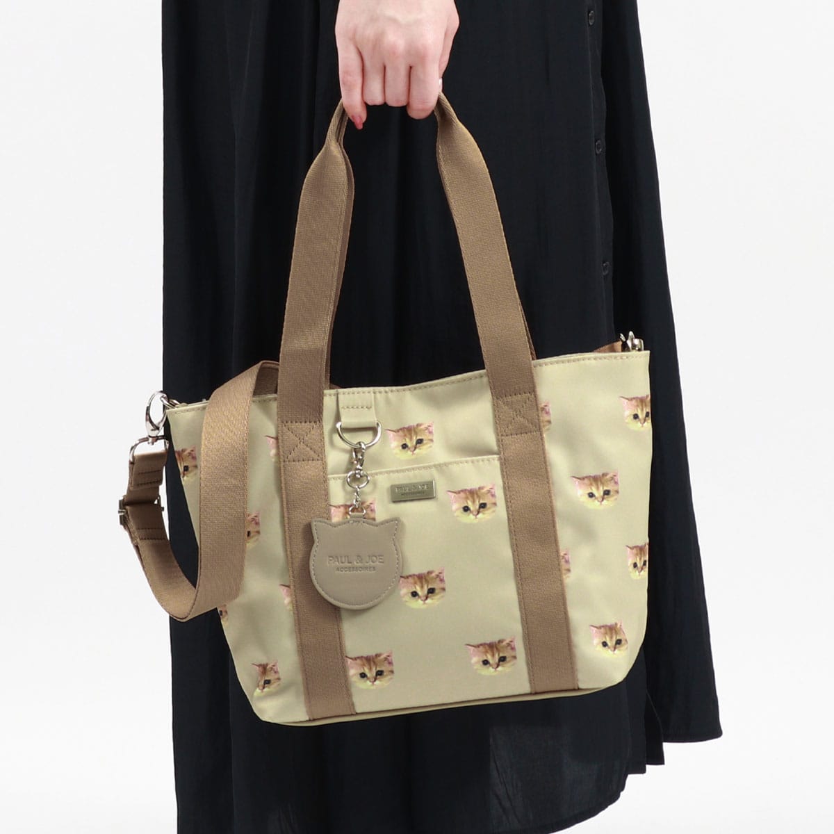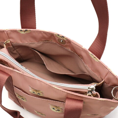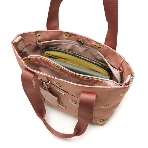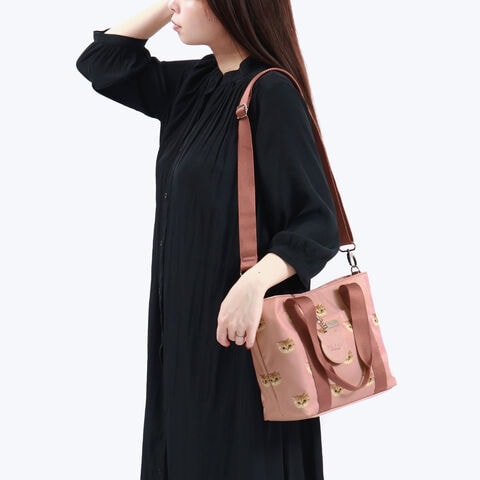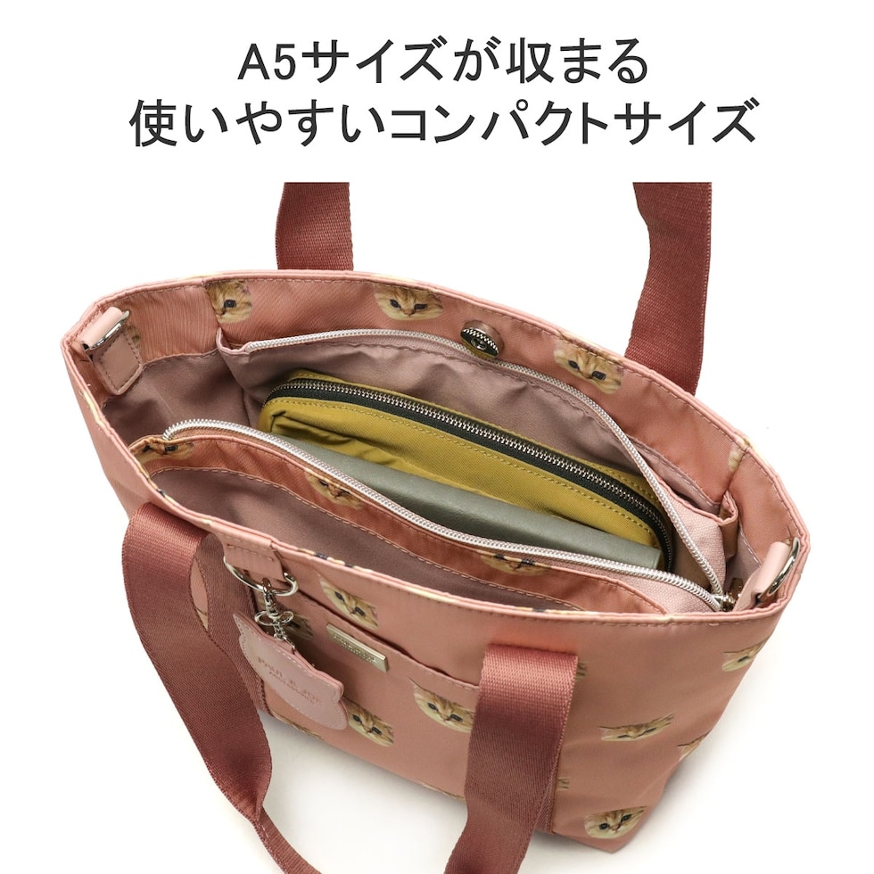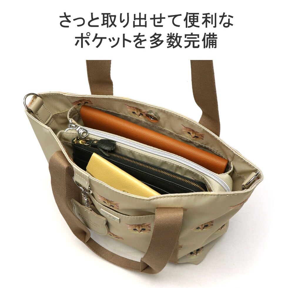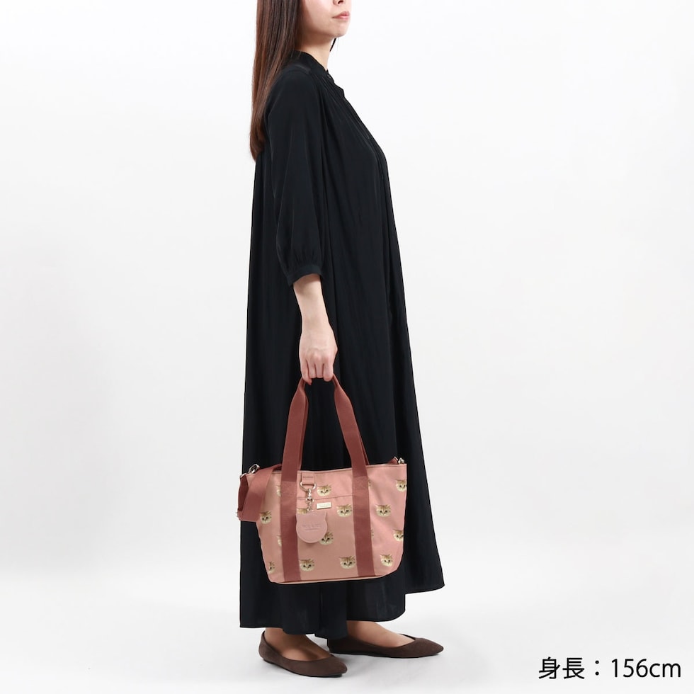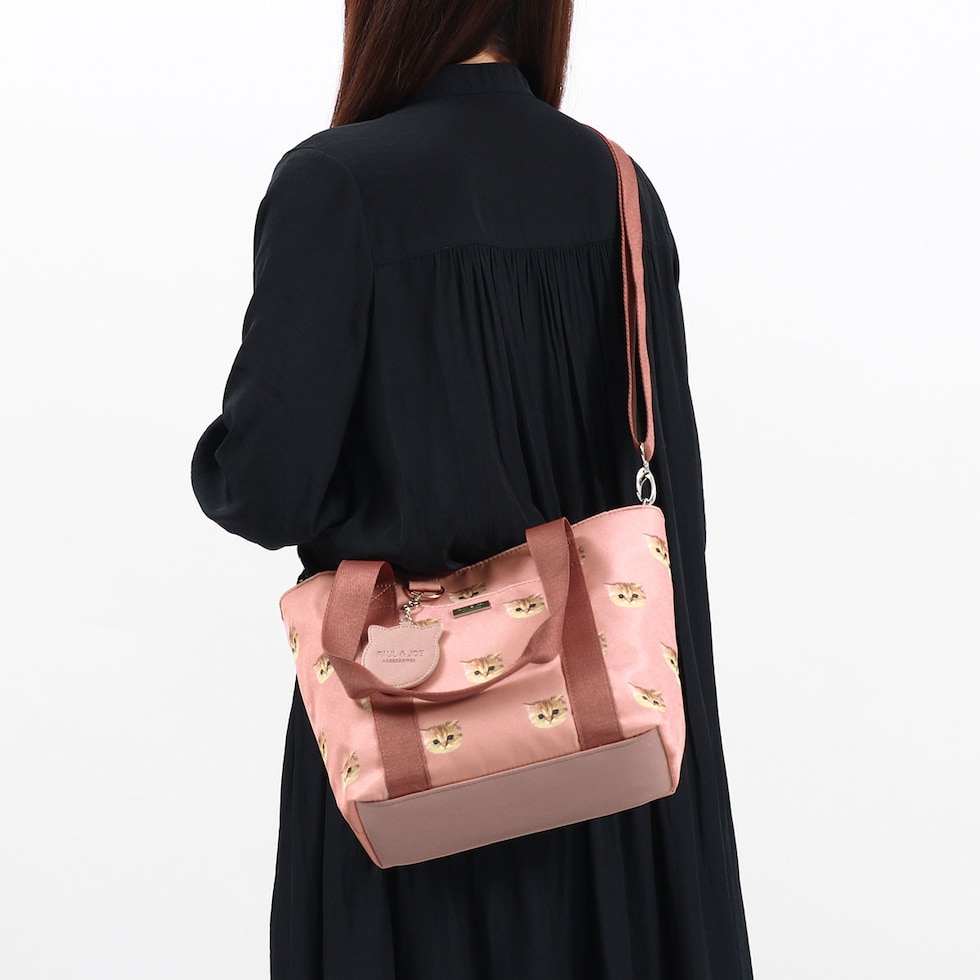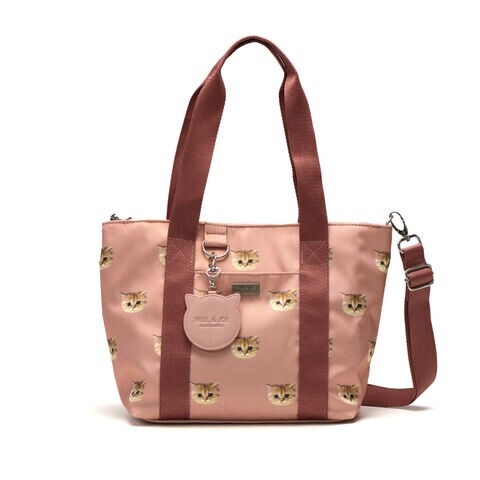 大人気のヌネット総柄シリーズがリニューアルして登場。こちらは、毎日使いたくなる大きすぎないサイズ感のトートバッグ。付属のストラップでショルダーバッグとしても使用できる2WAYタイプです。猫型のかわいいミラーがデザインのアクセントになった愛らしいアイテムとなっています。