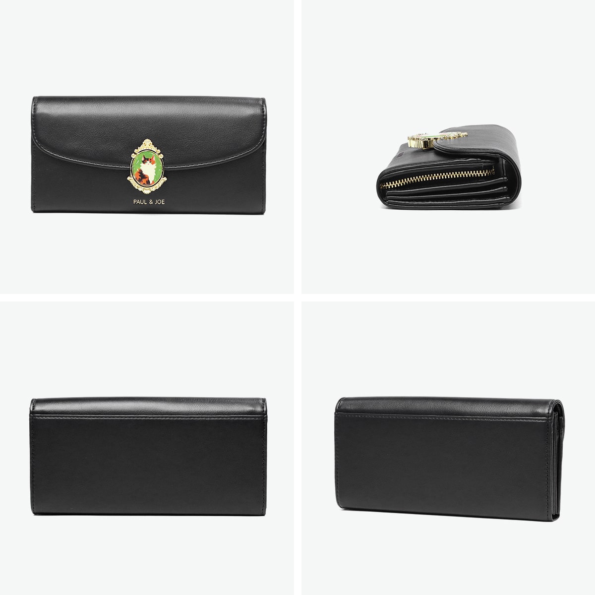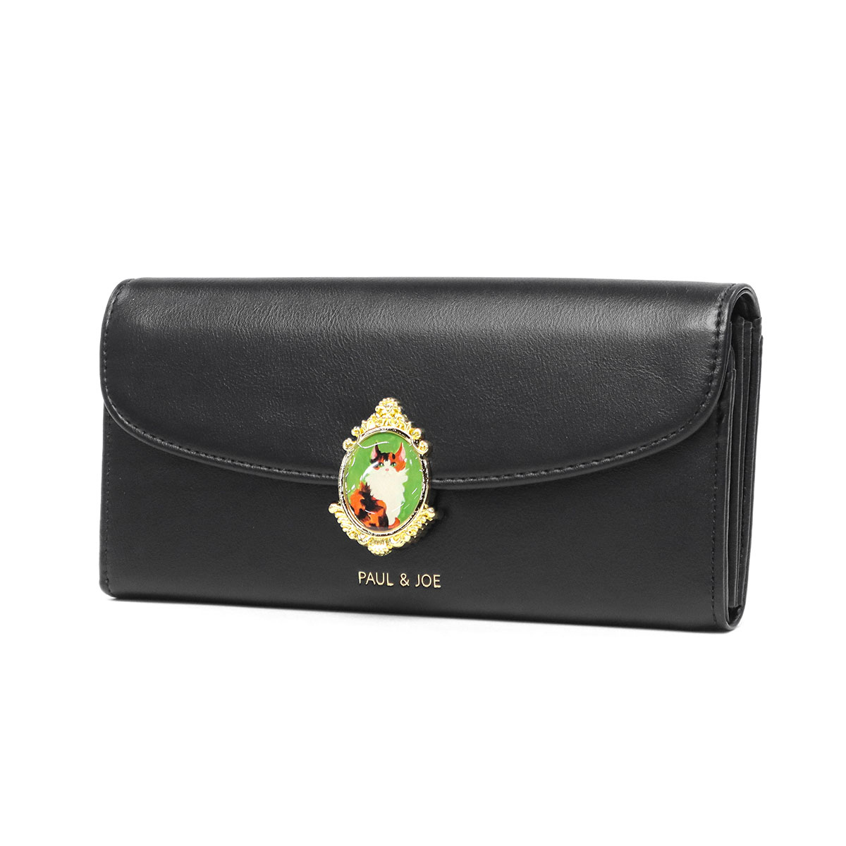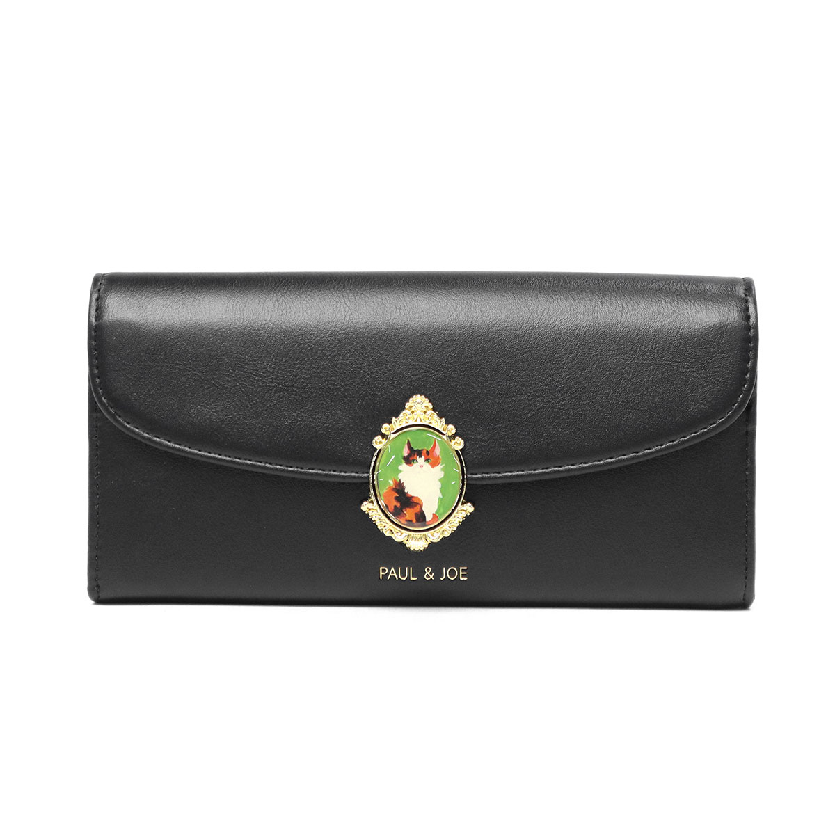 PAUL&JOE ACCESSOIRES 長財布 ブランド 大容量 かぶせ 財布 ポールアンドジョー カード 小銭入れ 合皮 かわいい 可愛い おしゃれ 上品 猫 ネコ ねこ ブローチ CAT BROOCH かぶせ束入れ PJA-W1171