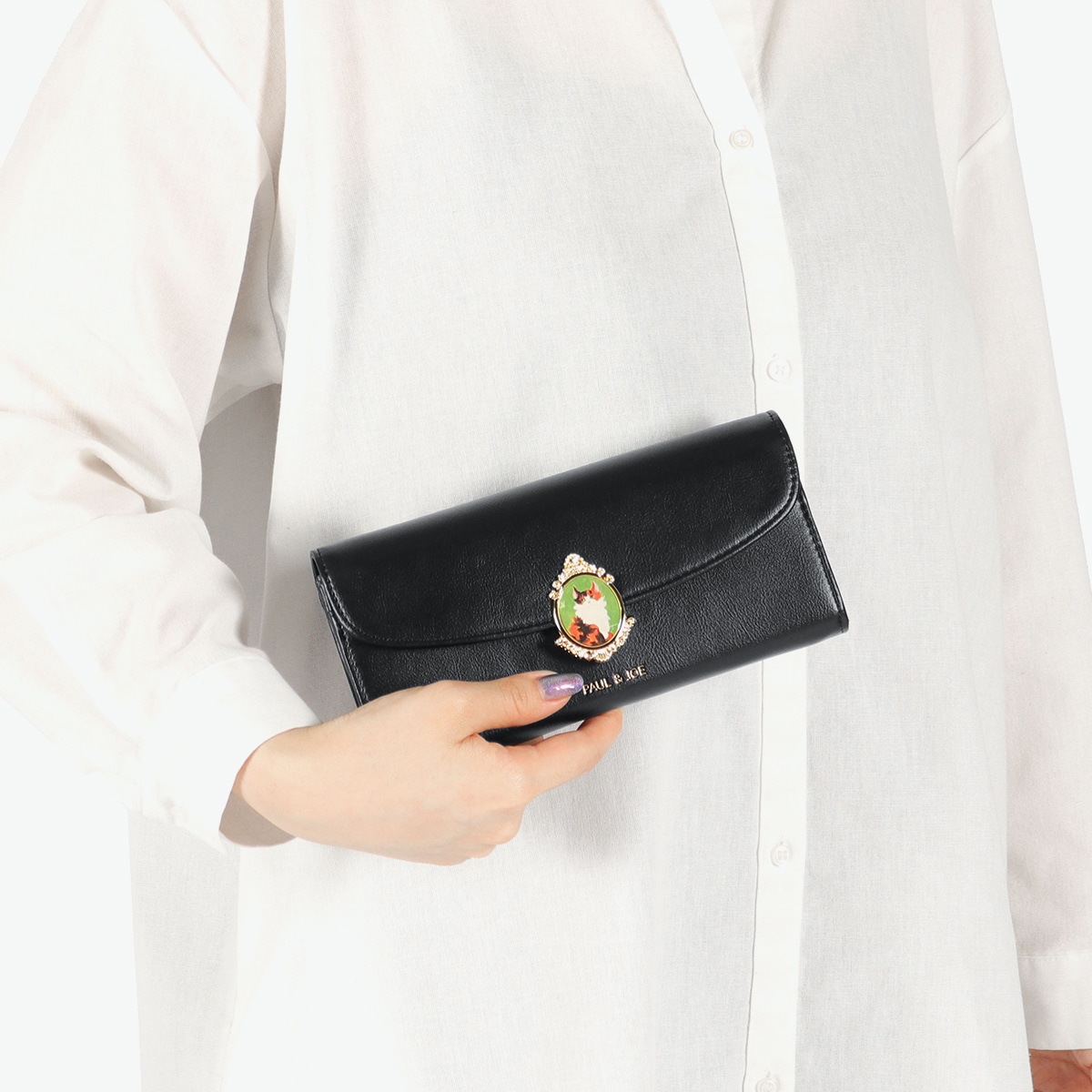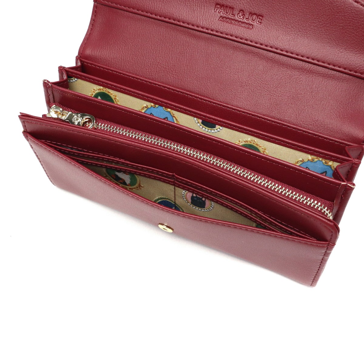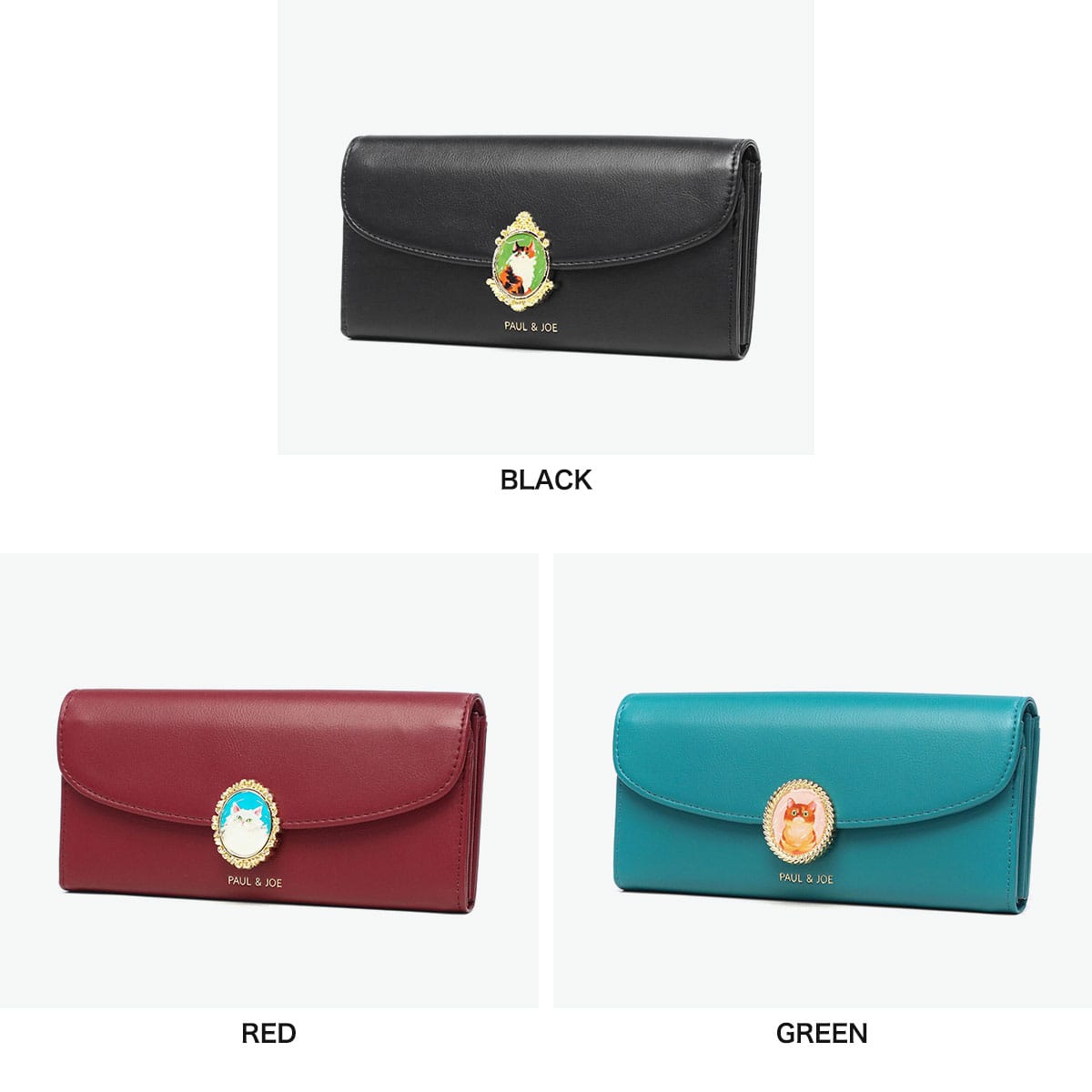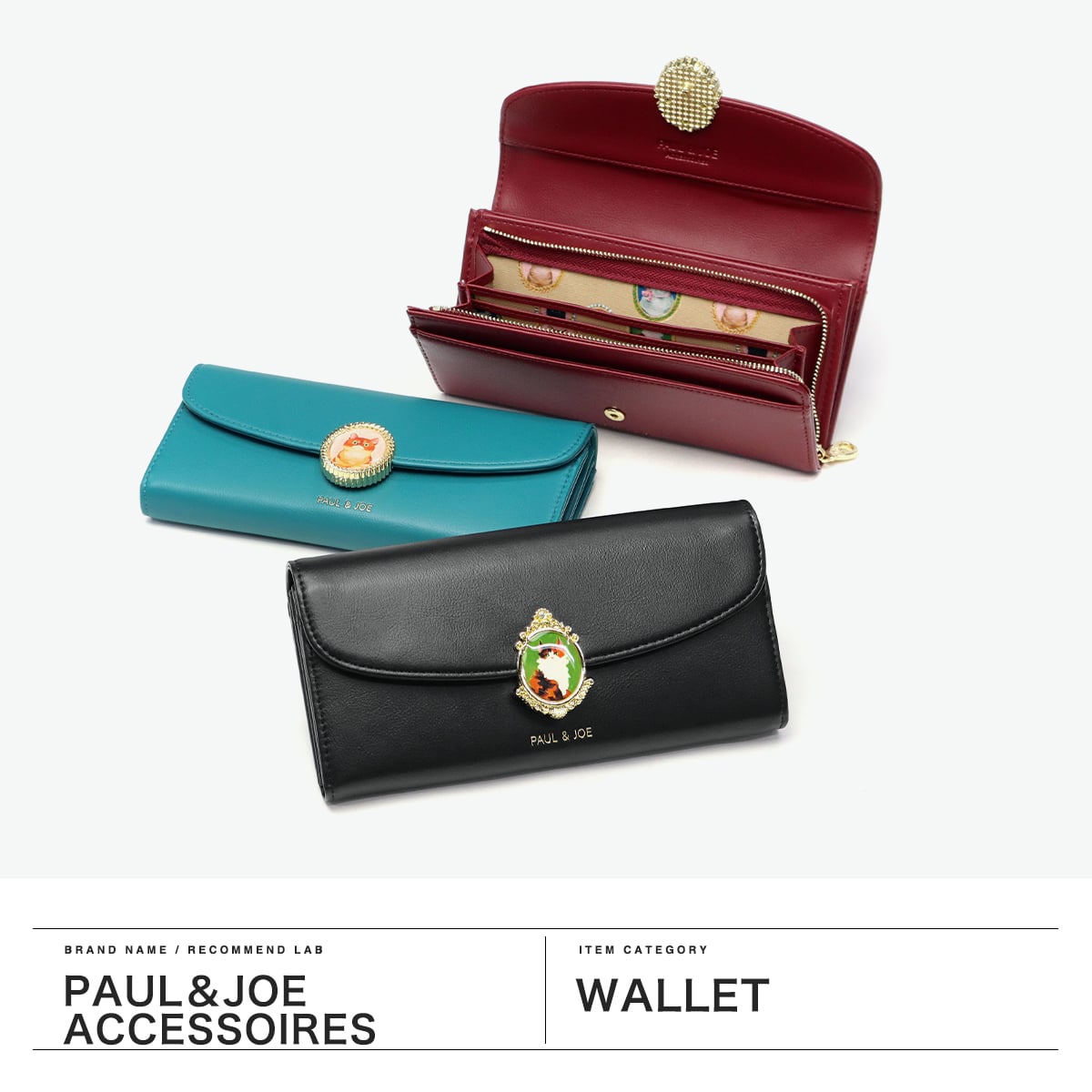 PAUL&JOE ACCESSOIRES 長財布 ブランド 大容量 かぶせ 財布 ポールアンドジョー カード 小銭入れ 合皮 かわいい 可愛い おしゃれ 上品 猫 ネコ ねこ ブローチ CAT BROOCH かぶせ束入れ PJA-W1171