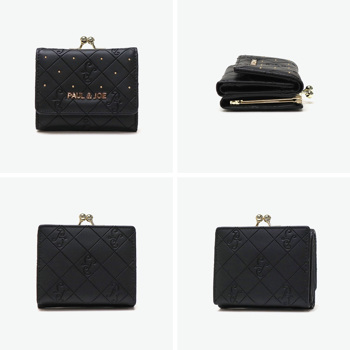 PAUL&JOE ACCESSOIRES 三つ折り財布 レディース がま口 女子高生 ポールアンドジョー 財布 ブランド コンパクト 三つ折り かわいい おしゃれ 小さめ ミニ 黒 小銭入れ 女子 軽量 ミニ財布 エンボス 口金ミニ財布 PJA-W1072