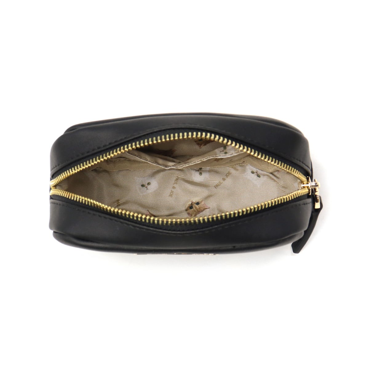 大きなネコ型フレームメタルが印象的な『BIG CAT METAL』シリーズのポーチです。ゴールドの輝きが遊び心を抑え、上品な仕上がりに。スクエア型のフォルムは見た目以上に収納力があり、メイク用品やガジェット類の持ち運びにも便利。内側にはヌネット&ジプシーの総柄裏地をあしらい、開くたびに心ときめくデザイン。大切な方へのギフトとしてもおすすめです。