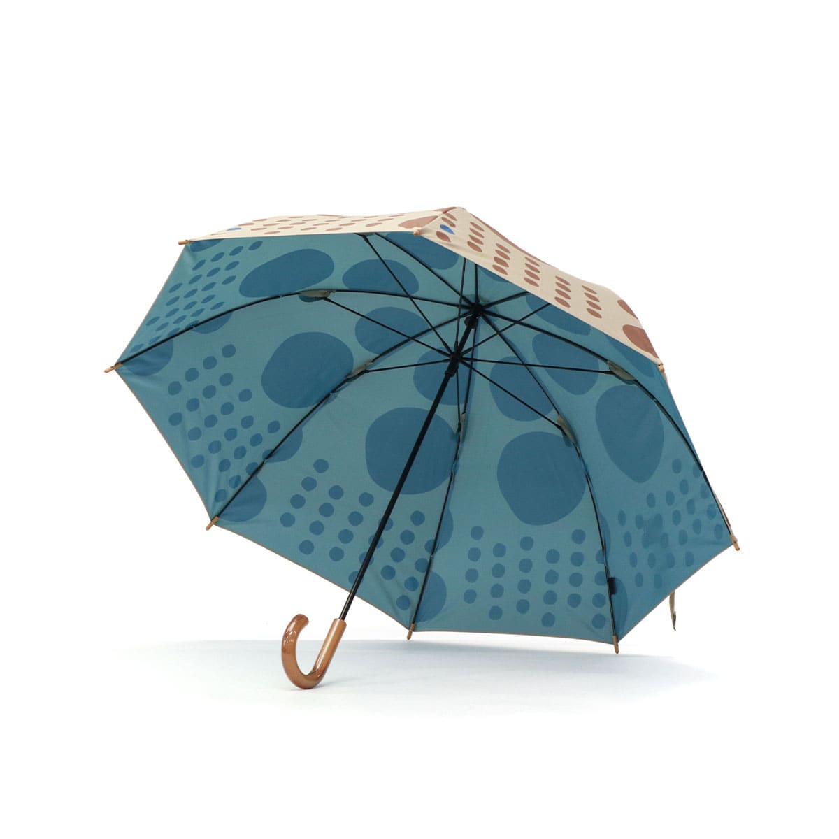 392 plusmを代表するテキスタイル「maru」の長傘。晴雨兼用、遮光・遮熱効果、さらに紫外線カット機能付きなので、全天候で活躍します。手元や石つき、つゆ先などには上品な木製パーツを採用し、他にはないおしゃれなデザインに仕上がっています。