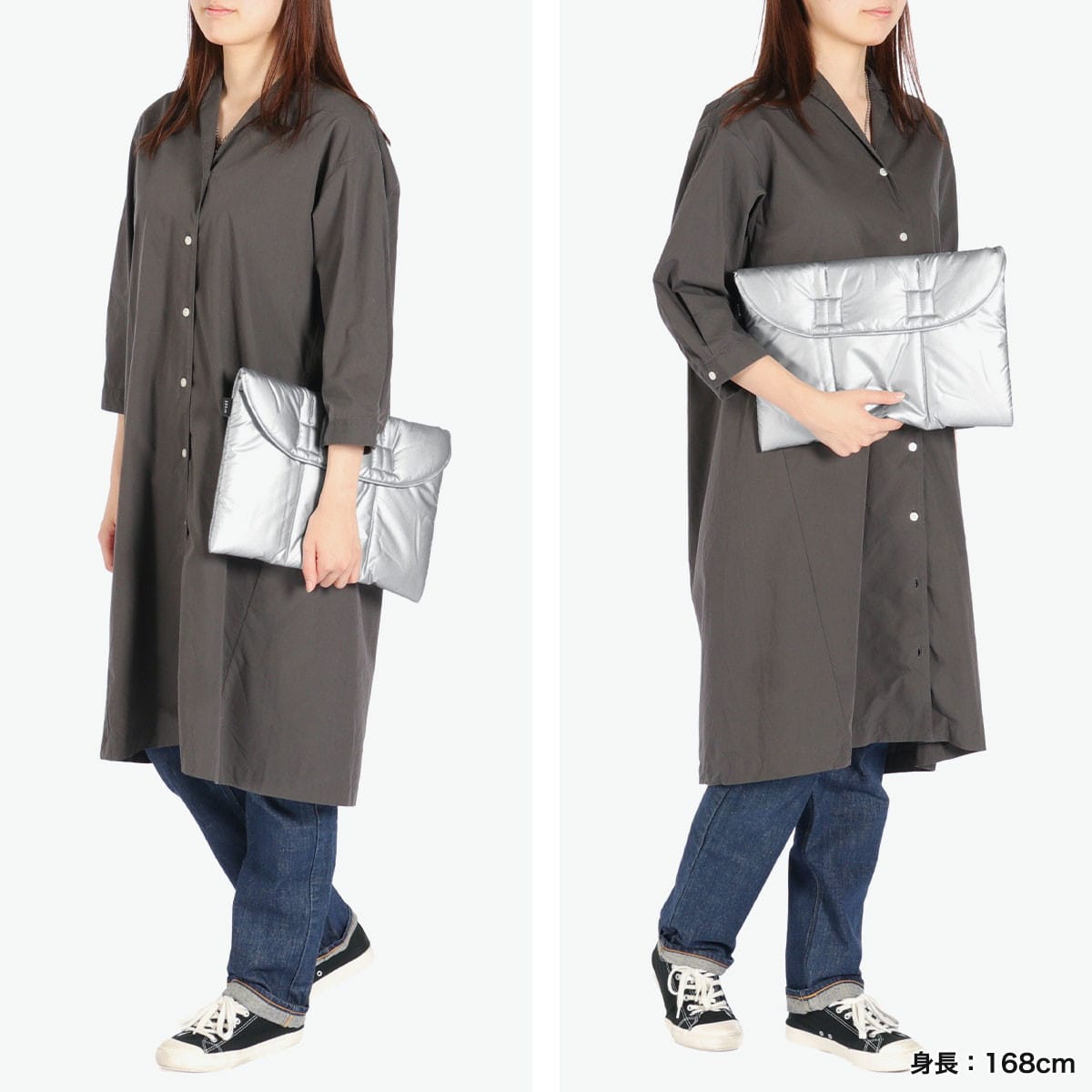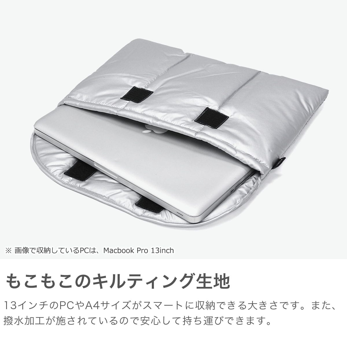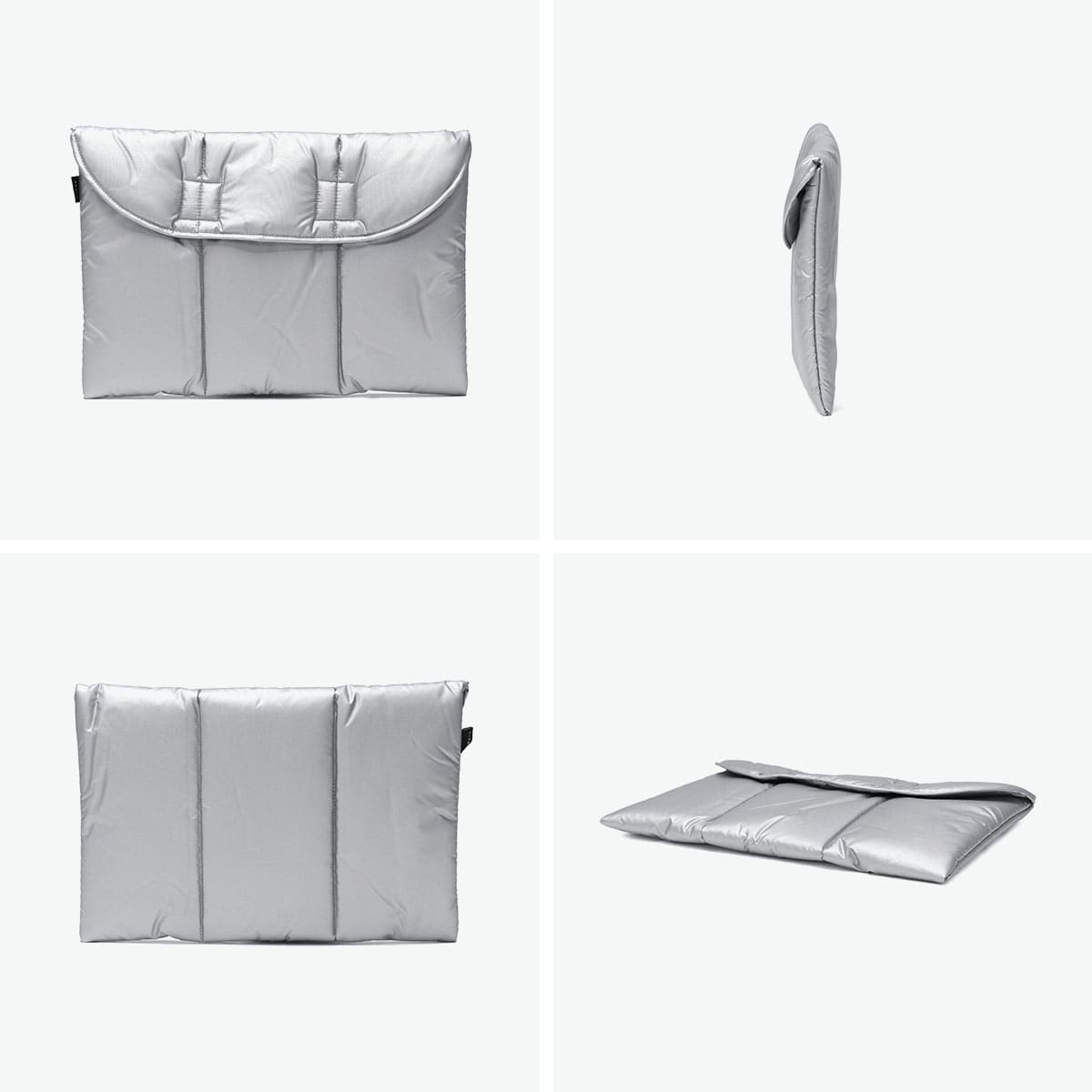洗練されたシルバーカラーが魅力のパソコンケースとしても使えるクラッチバッグ。中綿入りでクッション性があり、大切な持ち物をやさしく守ります。A4サイズ対応でバッグインバッグとしてもおすすめです。