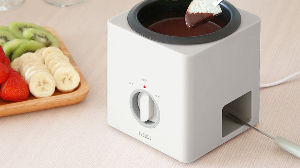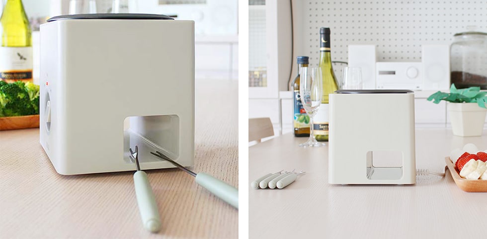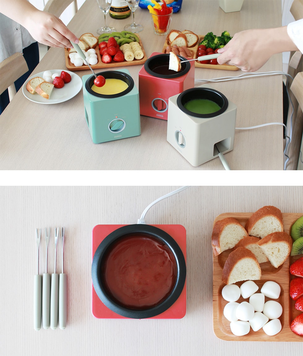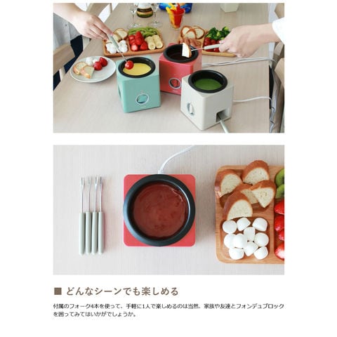 付属のフォーク4本を使って、手軽に1人で楽しめるのは当然、家族や友達とフォンデュブロックを囲ってみてはいかがでしょうか。