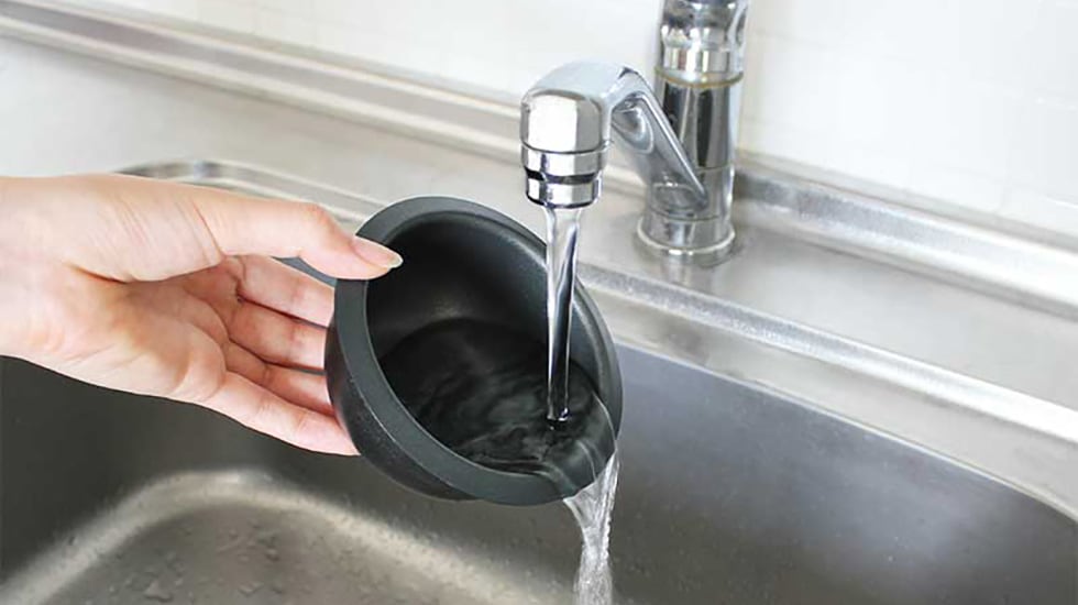 フッ素樹脂塗膜加工された鍋は具材がこびり付きにくく、ブロック型の本体も拭き掃除でお手入れも簡単です。