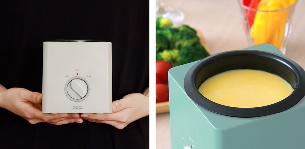※本製品でチーズフォンデュをお楽しみいただく際は、別鍋で溶かしたチーズを用意し、保温機能としてご使用ください。