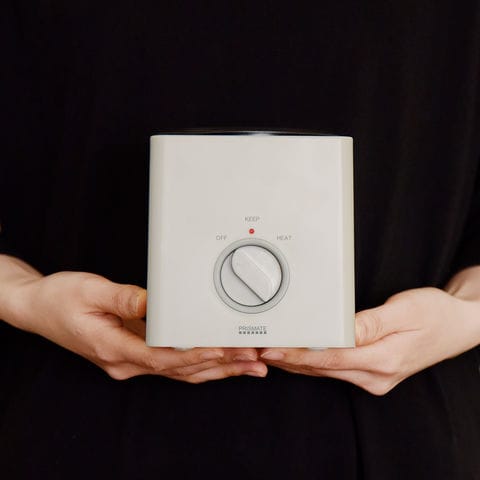 電源は一目でわかるオフ、ヒート、キープの3段階。ヒートとキープの加熱時にはスイッチ上部にあるランプが光る安全設計です。