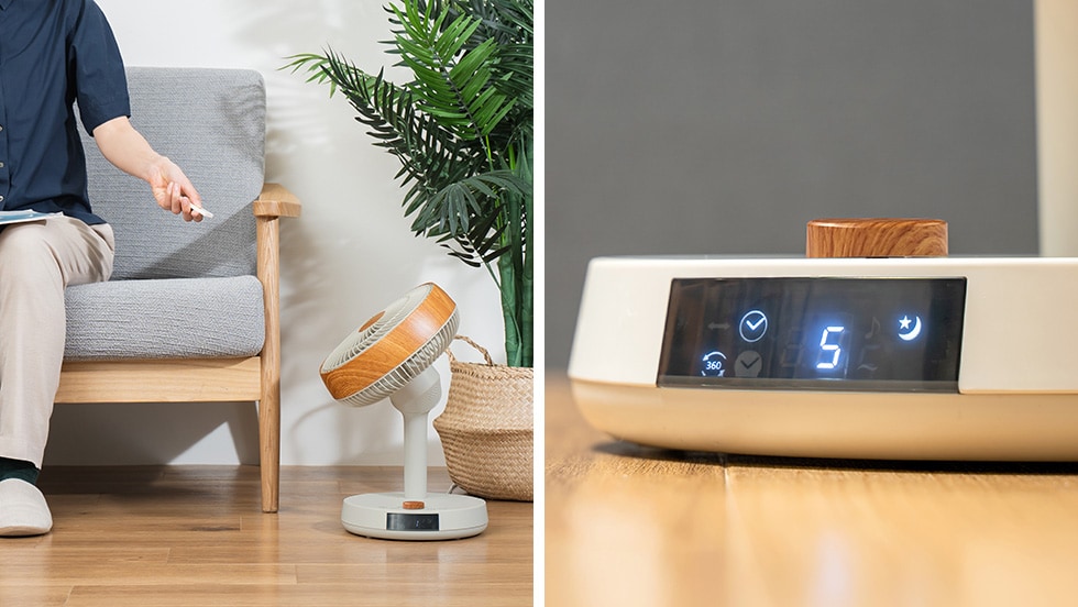 春夏秋冬関係なく、あなたの生活に寄り添うサーキュレーター。自慢のパワフルさに繊細な調節が可能な風量調節、リモコン操作など欲しい機能がぎゅっと詰め込まれた高機能設計。機能面もデザインも妥協したくない方にピッタリの一台です。