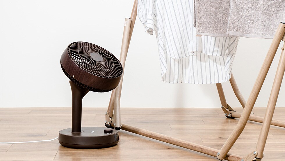 上下・左右に自動送風。広範囲に風を届けることができるので、空気の循環だけでなく、除湿や室内干しにも活躍します!
