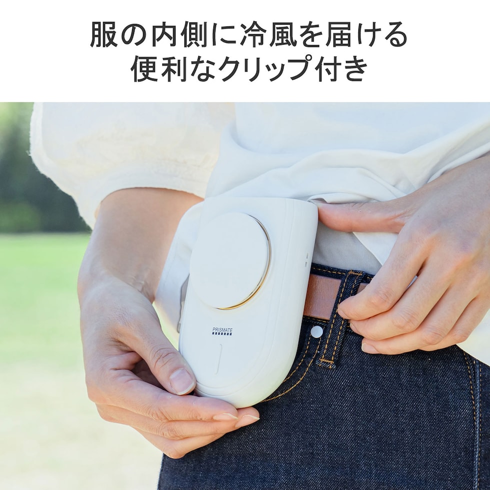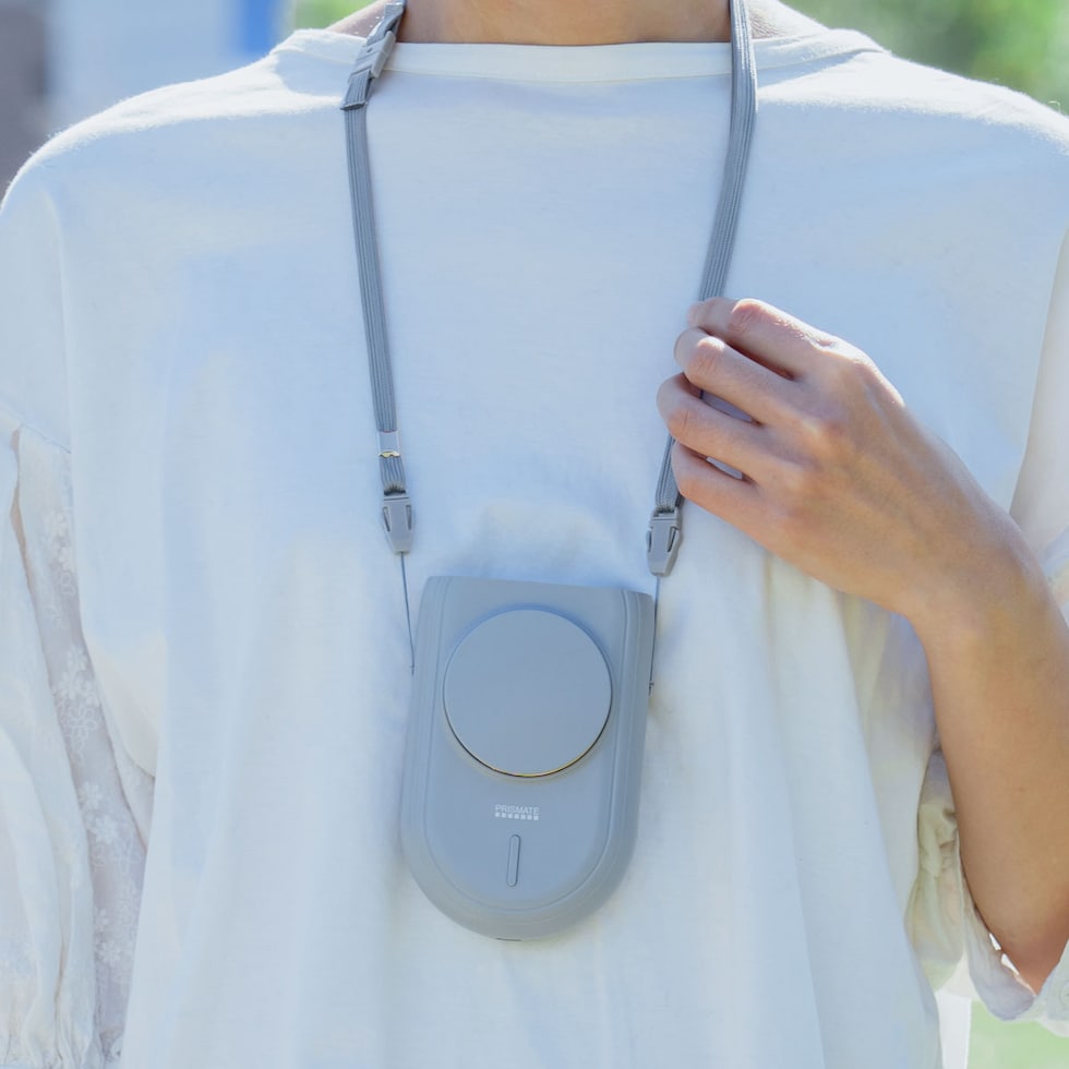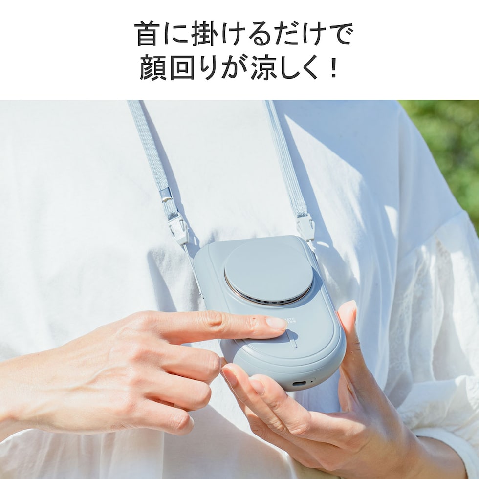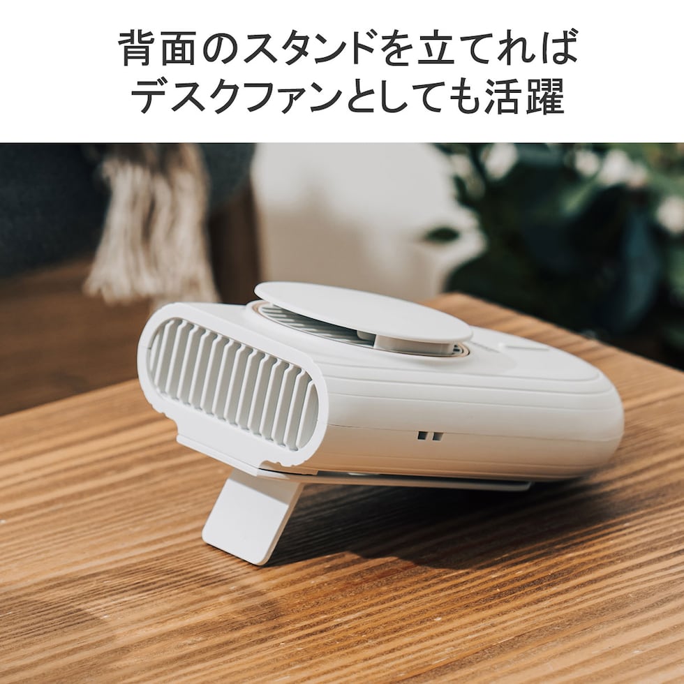 ネックストラップで首にかけたり、パンツやスカートのベルトに挟んだり、背面のスタンドを立ててデスクに置いたり…と、1つで多彩な使い方ができるハンズフリーファンです。シンプルかつかわいらしいカラーとデザインは、夏の涼し気なコーデとも相性バッチリ!暑い夏のお出かけが楽しみになる1台です。